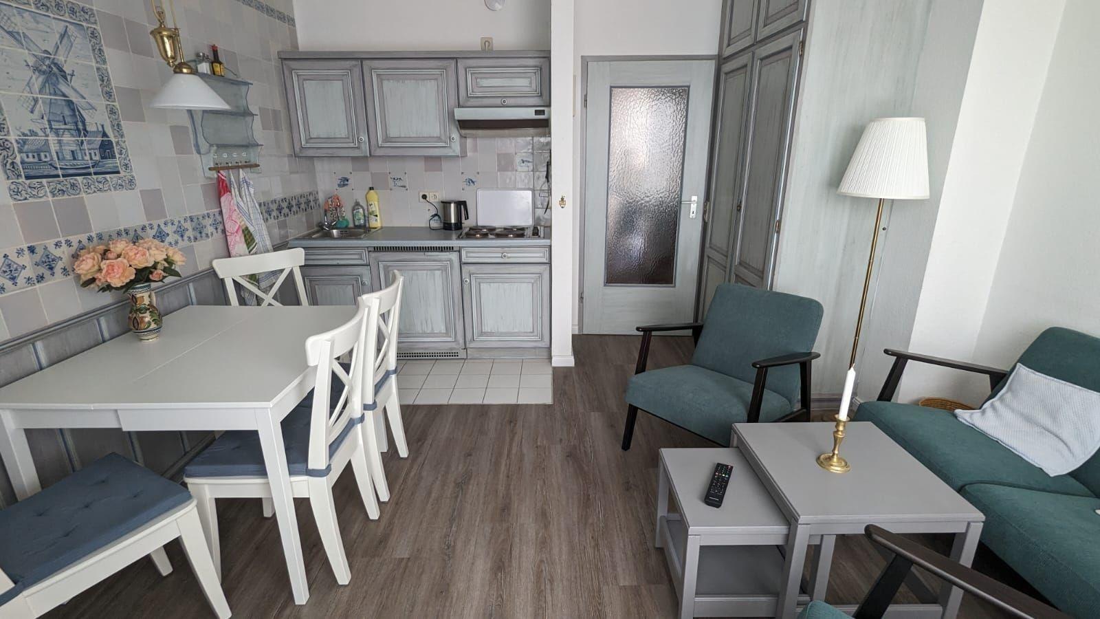 Die Wohnung ist sehr zentral, aber trotzdem ruhig gelegen. Fußlaufweite zum Südstrand sowie zur Einkaufsstraße betragen ca. 5 min.