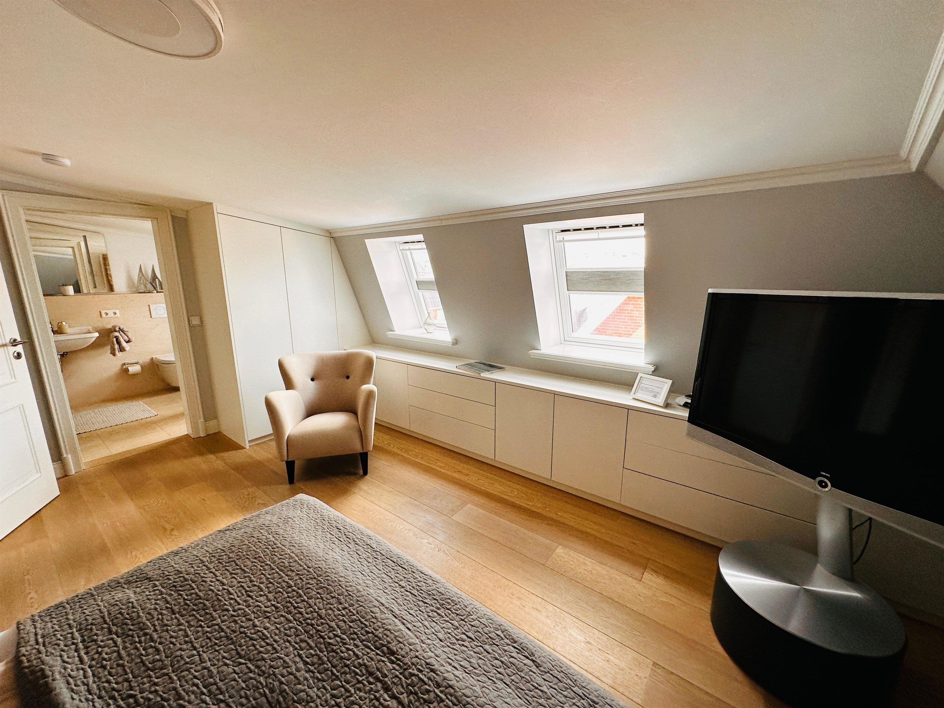 Von hier gelangen Sie auch auf den Balkon der Ihnen - nach Osten ausgerichtet - die Sylter Morgensonne anbietet. Durch die interne Treppe erreichen Sie das Schlafzimmer, mit Zugang zu einem vollwertigen und großzügigen Bad. Im Schlafzimmer befindet sich der große Loewe TV mit dem Telekom Entertain TV-Paket.