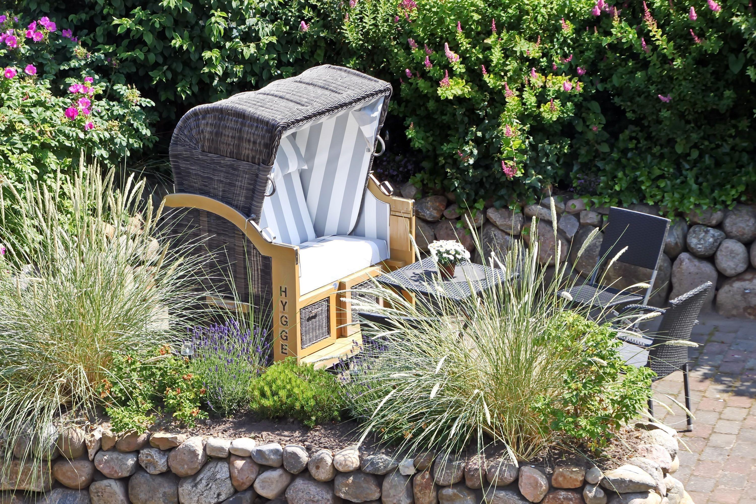 Ein Strandkorb steht Ihnen im Garten zur Verfügung. Ein PKW-Stellplatz befindet sich am Haus.