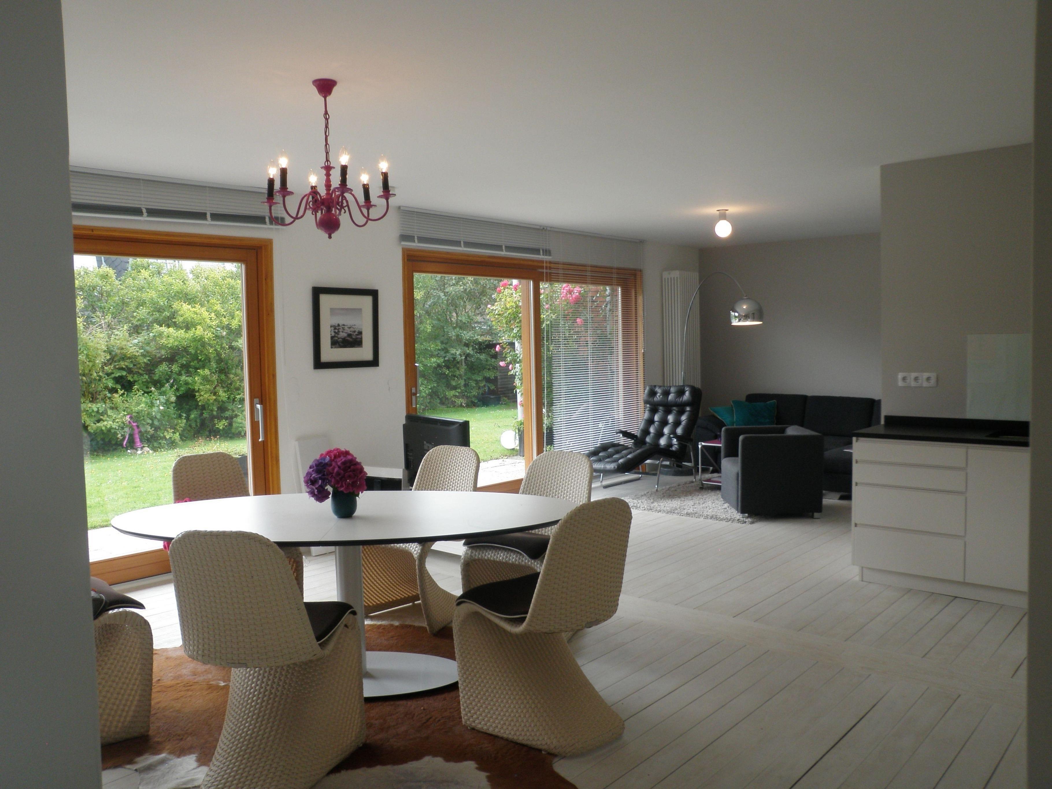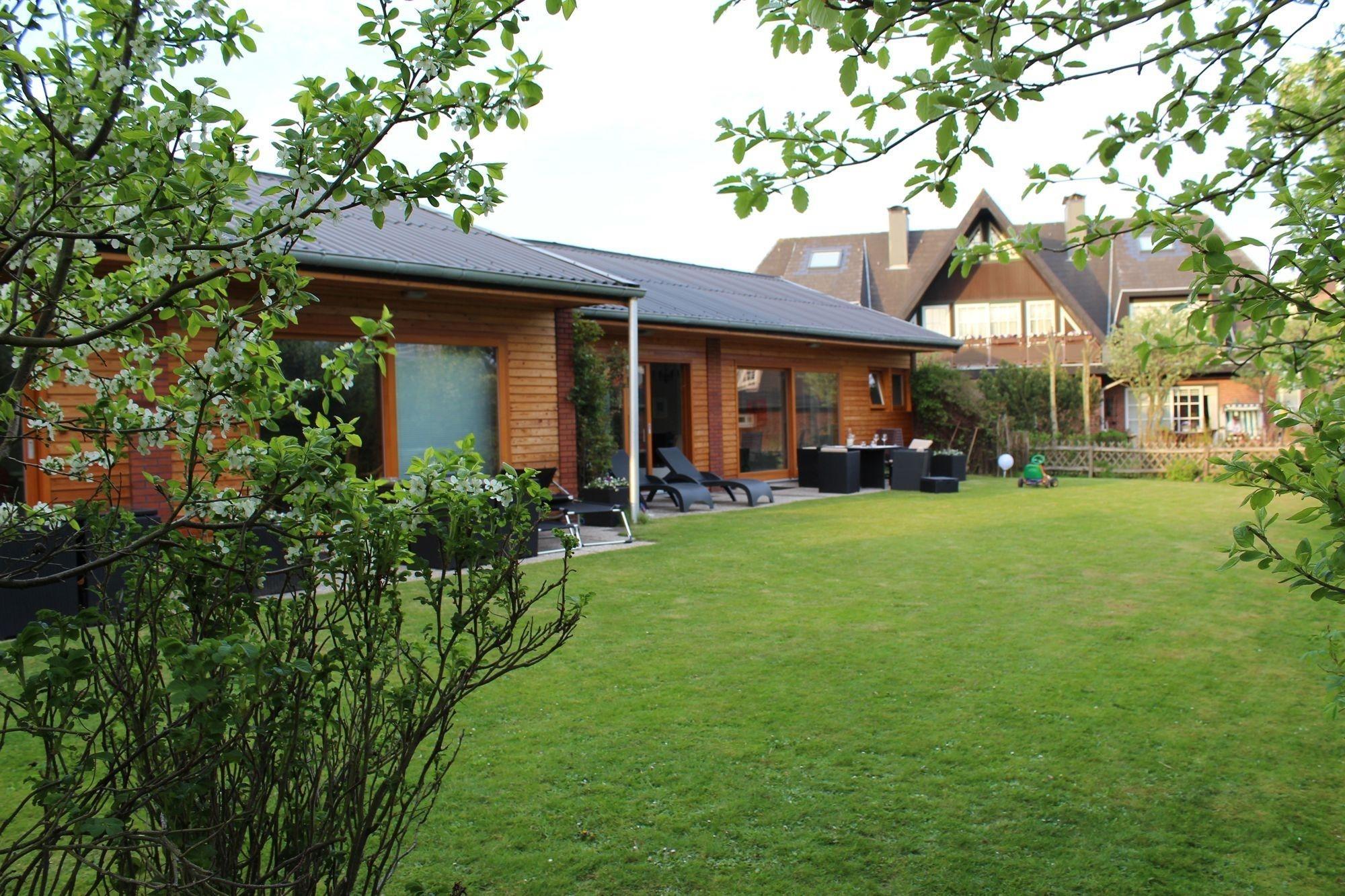 Der Bungalow befindet sich in einer verkehrsberuhigten Strasse auf einem sehr grosszügigen Grundstück. Sie haben eine wunderschöne Südterrasse mit sonnigem Garten und die Kinder haben zusätzlich eine grosse Wiese auf der anderen Seite zum Spielen. So hat jeder seinen ungestörten Bereich.