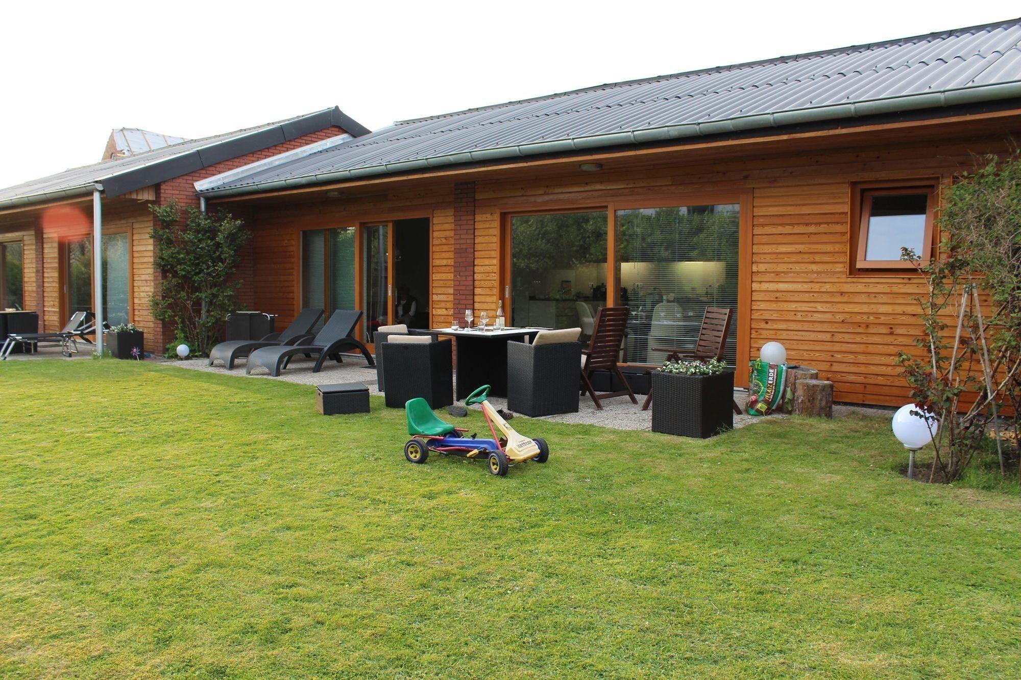 Der lichtdurchflutete Bungalow XL hat 3 Schlafzimmer (2x Doppelbett, 1x Etagenbett) 2 Bäder und bietet 6 Personen Platz. Die Räume sind modern und sehr gemütlich. Sie haben eine grosse Südterrasse, Garten und Parkplatz. 400m zum Strand 800m zur City.