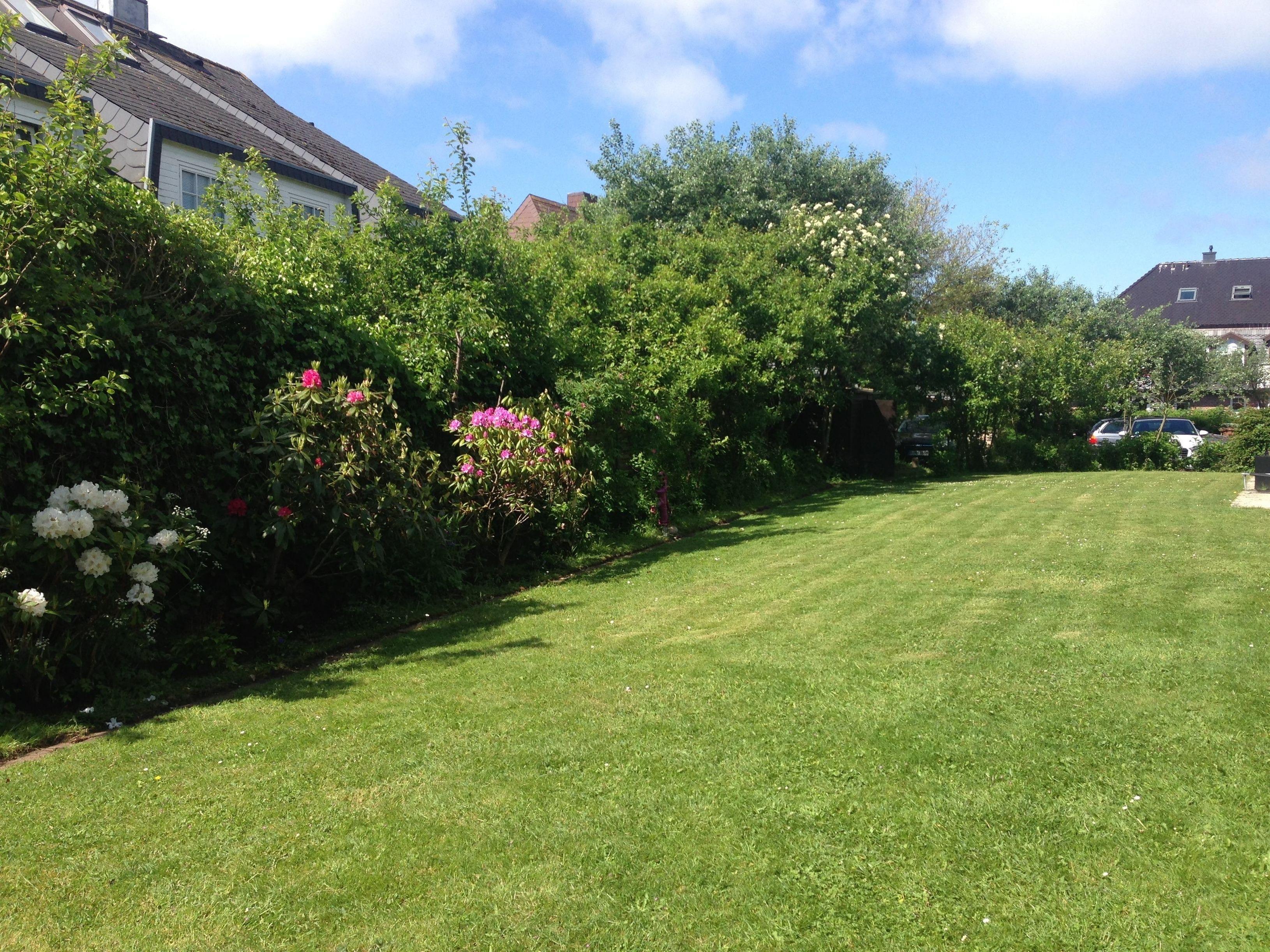 Der Bungalow befindet sich in einer verkehrsberuhigten Strasse auf einem sehr großzügigen Grundstück. Sie haben eine wunderschöne Südterrasse mit sonnigem Garten und die Kinder haben zusätzlich eine große Wiese auf der anderen Seite zum Spielen. So hat jeder seinen ungestörten Bereich.