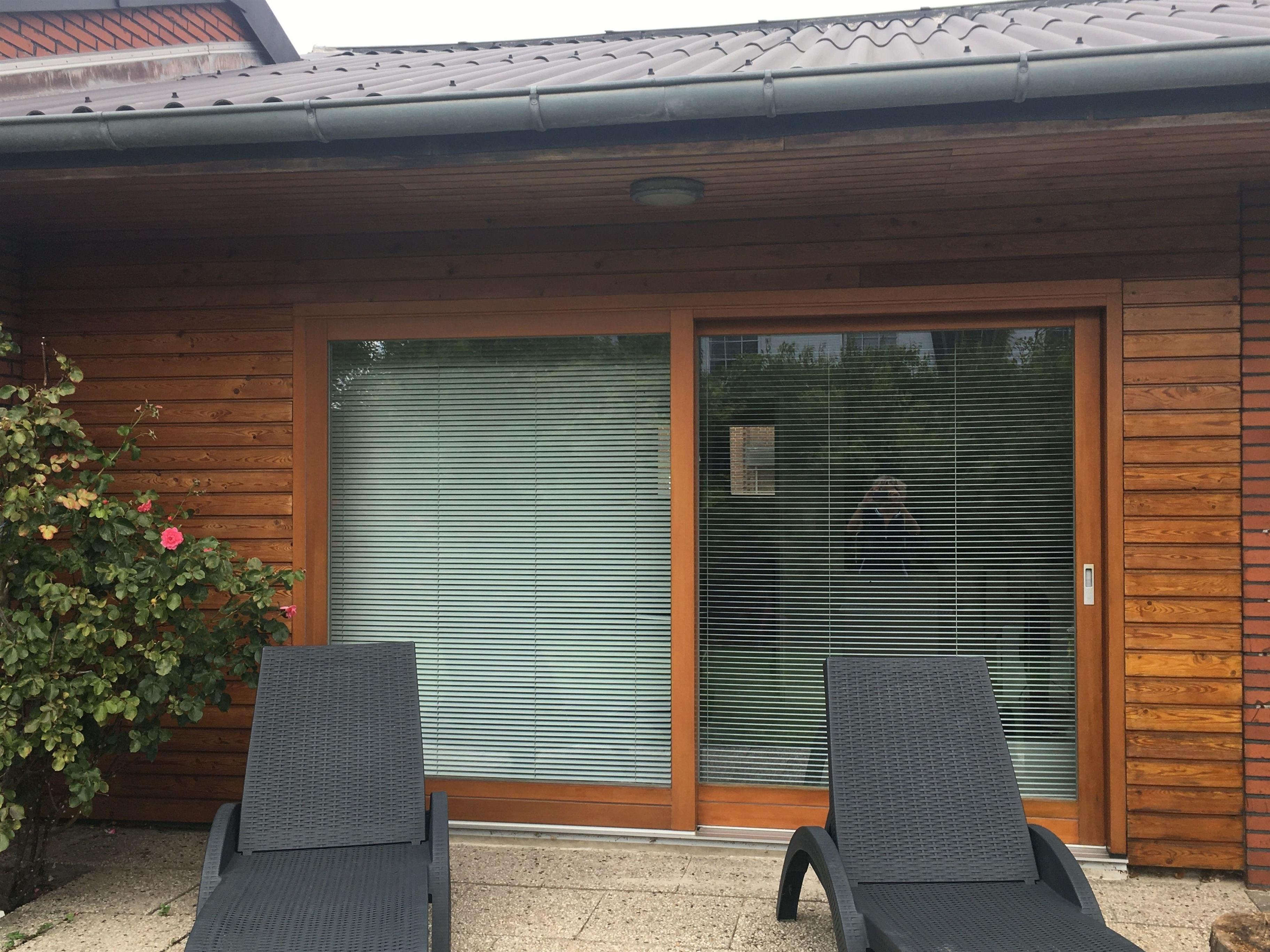 Der Bungalow befindet sich in einer verkehrsberuhigten Strasse auf einem sehr grosszügigen Grundstück. Sie haben eine wunderschöne Südterrasse mit sonnigem Garten und die Kinder haben zusätzlich eine grosse Wiese auf der anderen Seite zum Spielen. So hat jeder seinen ungestörten Bereich.