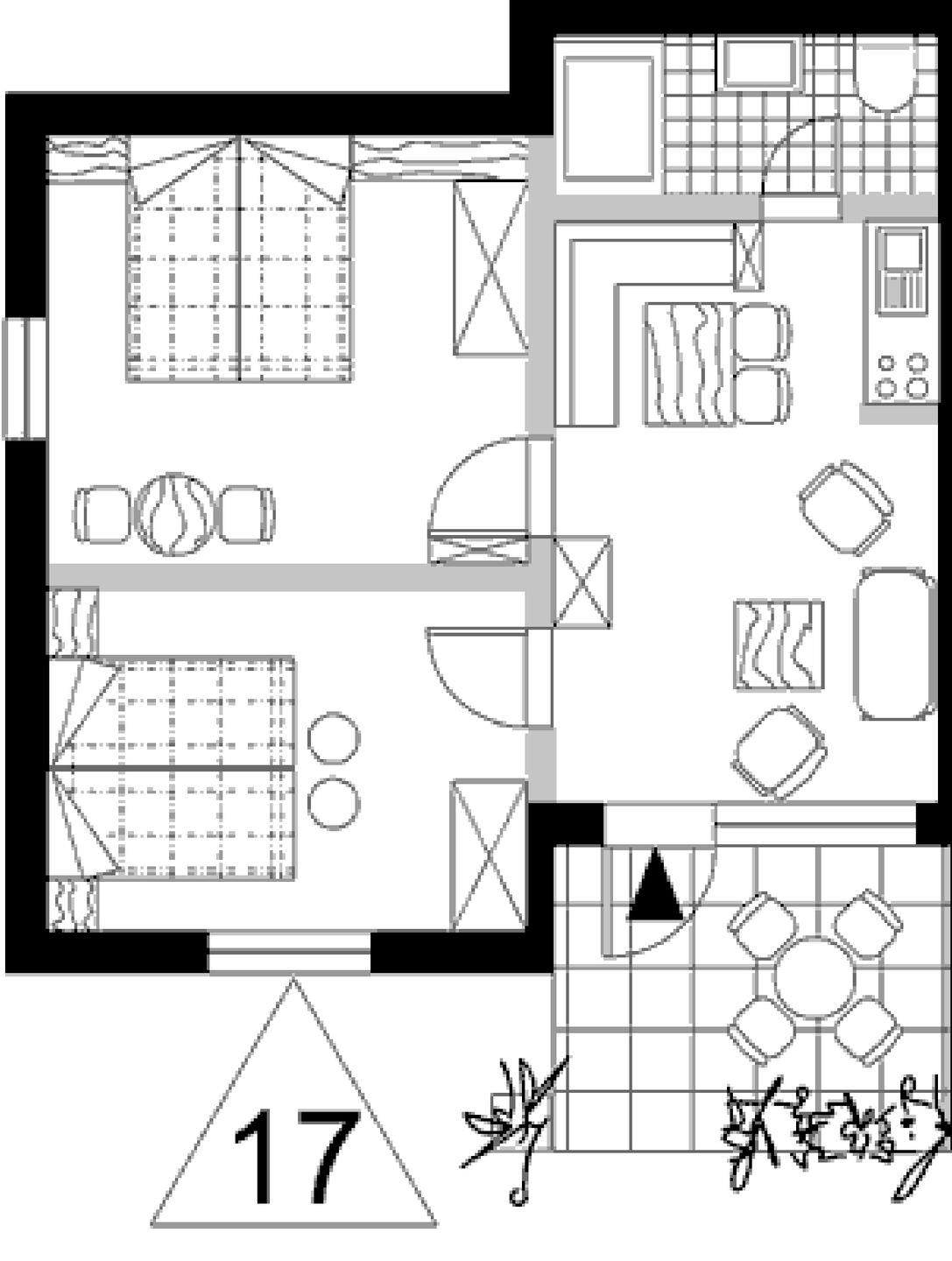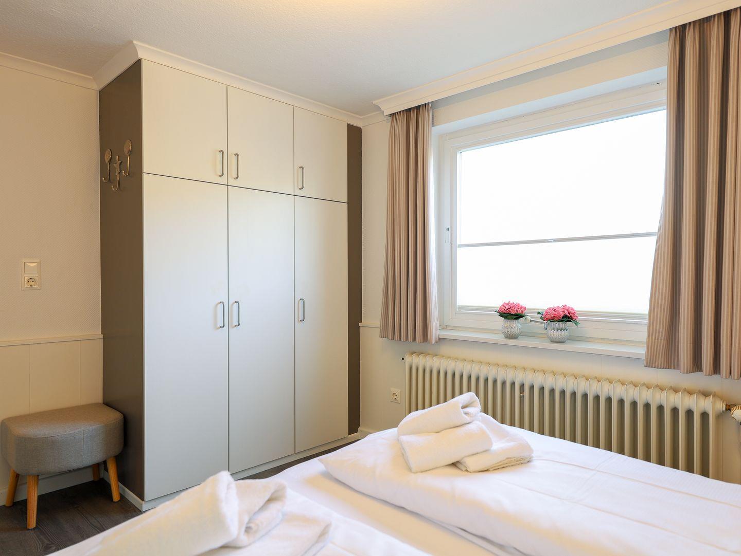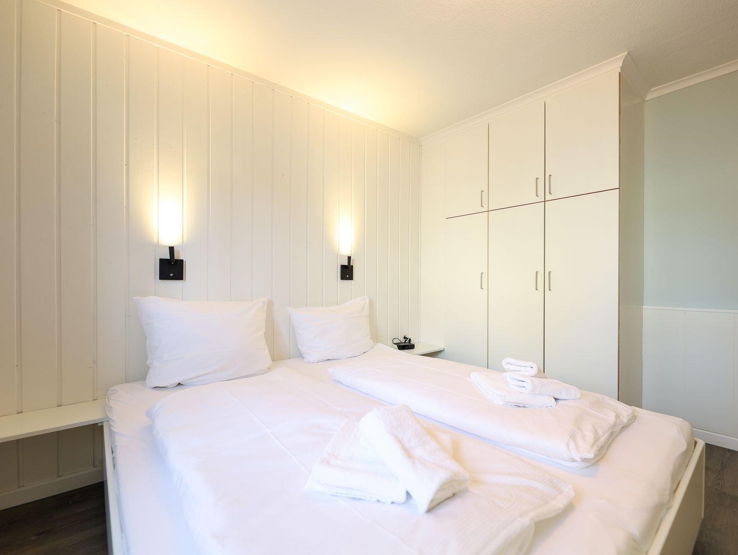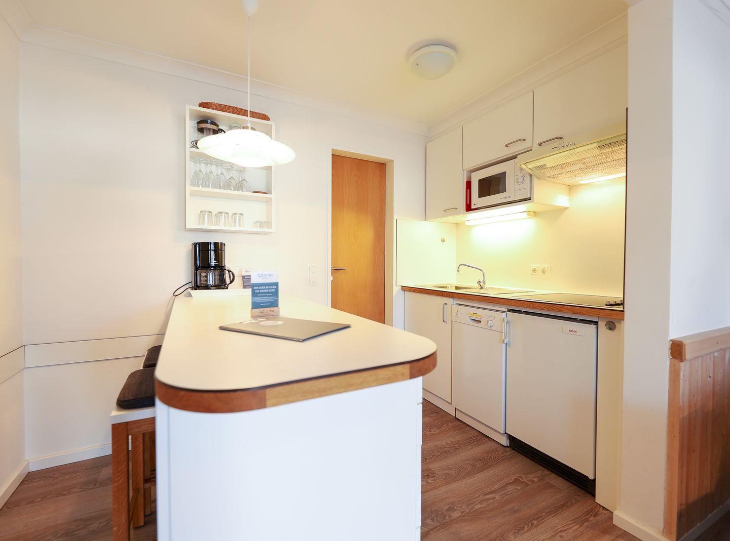 Mit individuell getischlerte Einbauten, hochwertige Holzvertäfelungen und hellen Pastelltönen bietet das Appartement viel Platz für alle, bei denen Komfort großgeschrieben wird. Nicht zu viel, nicht zu wenig, sondern genau richtig. Zwei Schlafzimmer mit bequemen Doppelbetten sorgen auch nachts dafür, dass jeder einen traumhaften Schlafplatz hat. Das Wohnzimmer verfügt über einen lässigen Tresen und eine große Couch zum chillen. Abgerundet wird dieser Wohlfühlort durch eine kleine aber gut ausgestattete Küchenzeile sowie ein helles Duschbad. Bei schönem Wetter lädt die Terrasse vor der Tür zum Draußen sitzen ein.