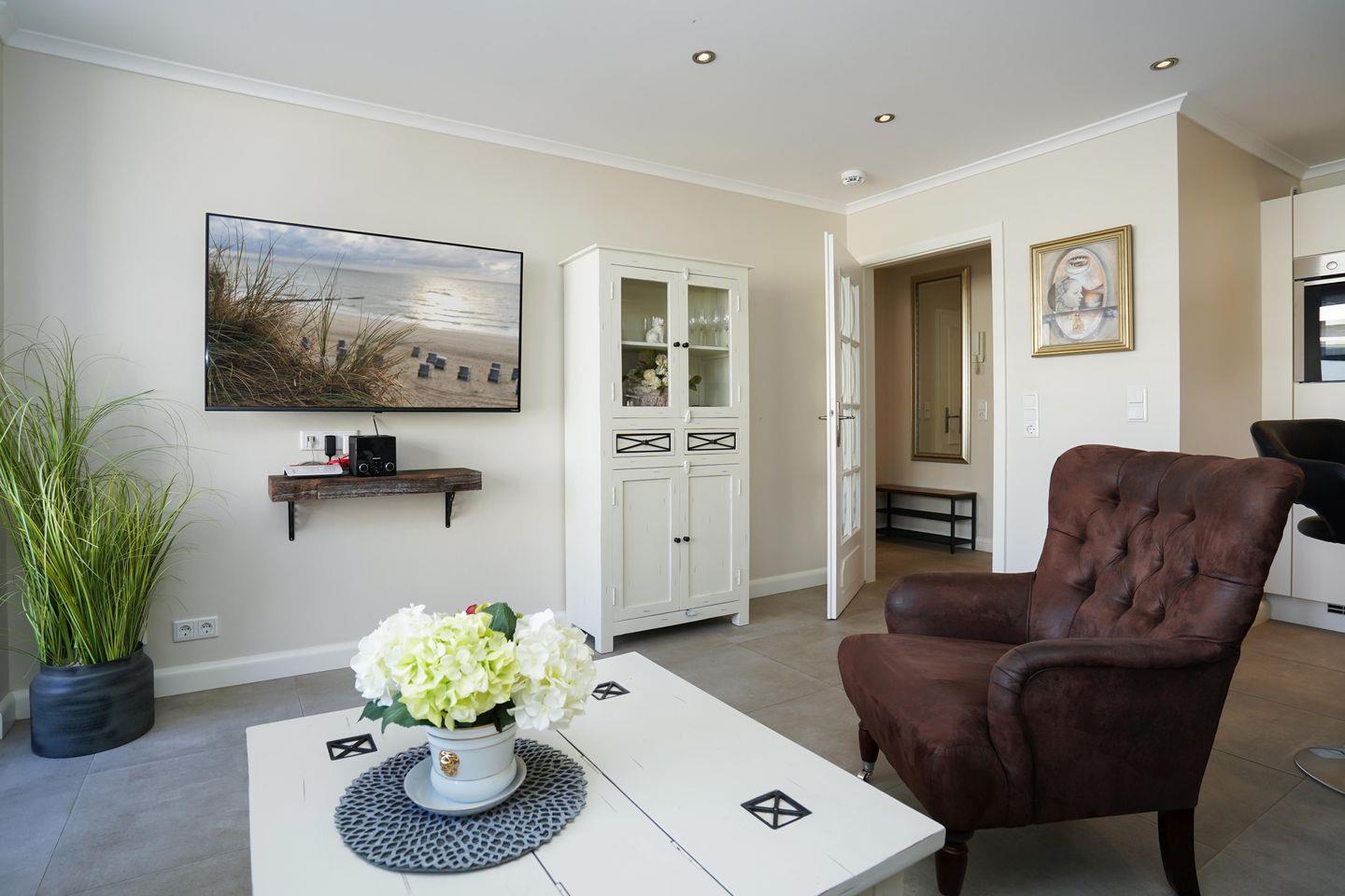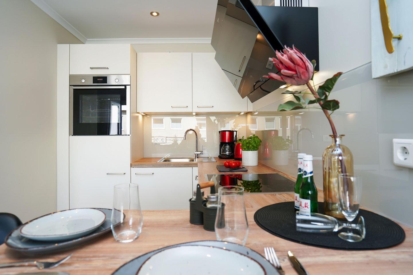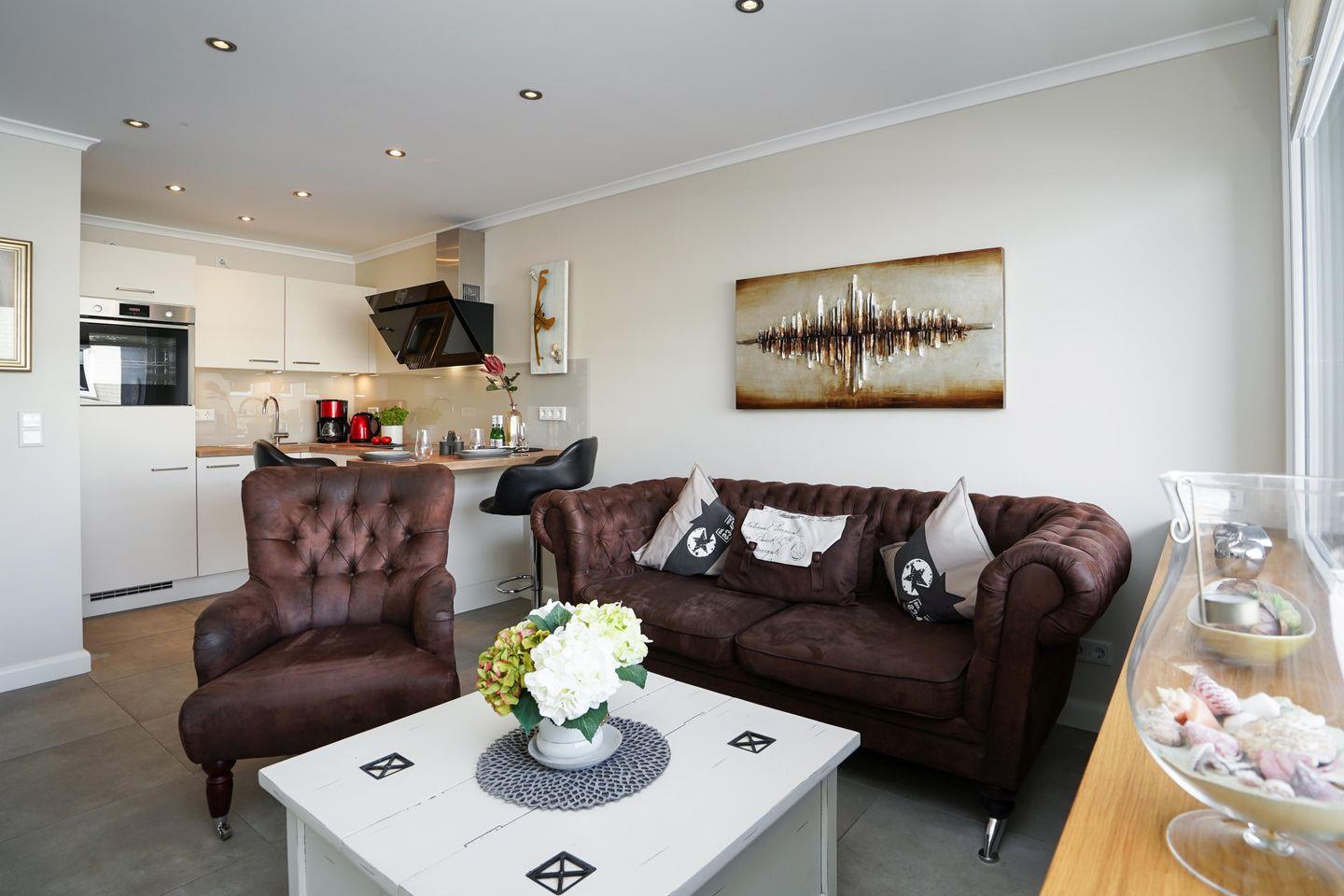 Dieses moderne ca. 50 m² große App. für bis zu 2 Personen befindet sich zentral in Westerland. Es erwartet Sie eine offene, voll ausgestattete Küche samt Geschirrspüler mit angrenzendem, hellen Wohn- und Essbereich. Nutzen Sie gerne den überdachten Balkon mit Blick auf die Friedrichstraße und erleben die urbane Seite von Westerland. Das gut geschnittene Schlafzimmer samt Doppelbett (180x200 cm) verfügt über einen großzügigen Einbauschrank sowie einem Smart-TV. Das moderne Badezimmer ist mit einer Dusche ausgestattet. Kostenloses WLAN sowie ein Fahrstuhl sind vorhanden. Eine Waschmaschine sowie ein Waschtrockner stehen gegen Gebühr zur gemeinschaftlichen Nutzung zur Verfügung. Haustiere sind willkommen.
