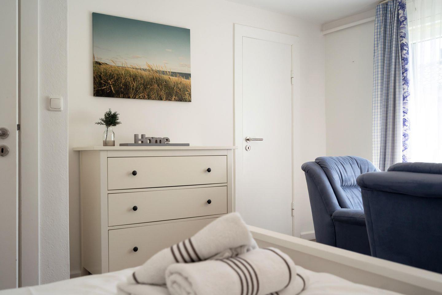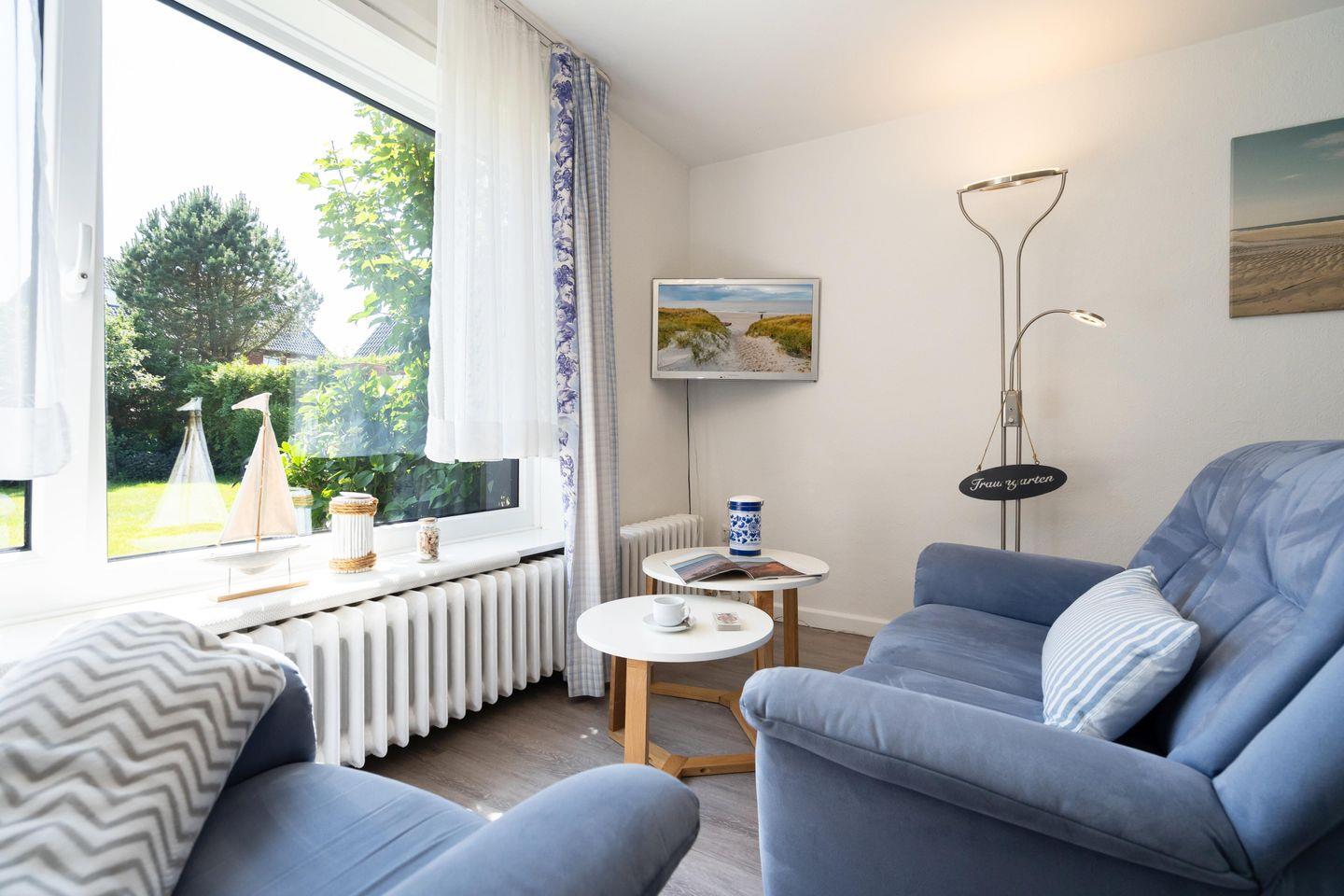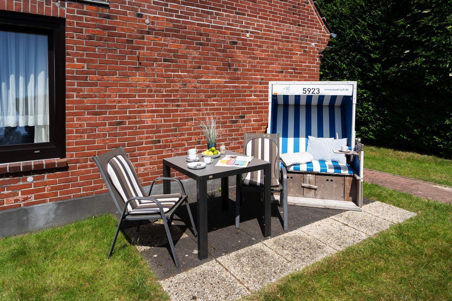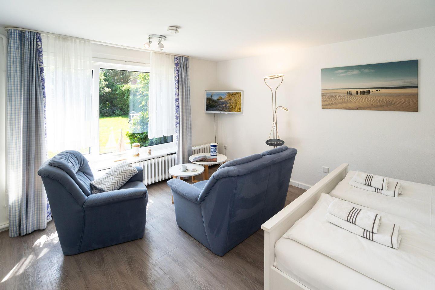 Gemütliches App. für bis zu 2 Pers. mit schöner Südterrasse in ruhiger, strandnaher Lage Westerlands. Inkl. WLAN, PKW-Stellplatz sowie Strandkorb (in der Saison).