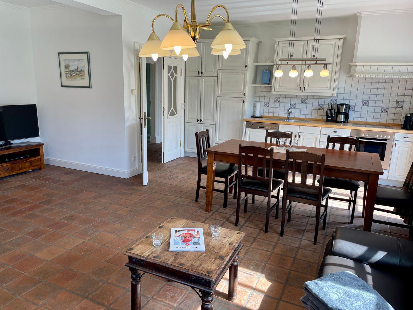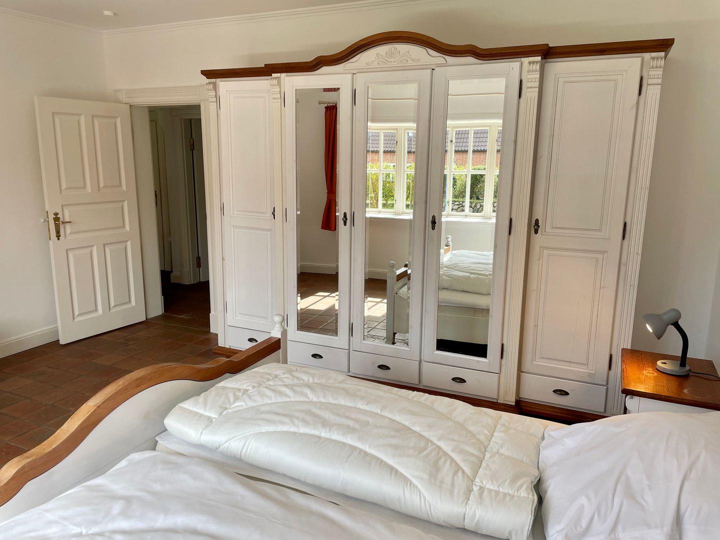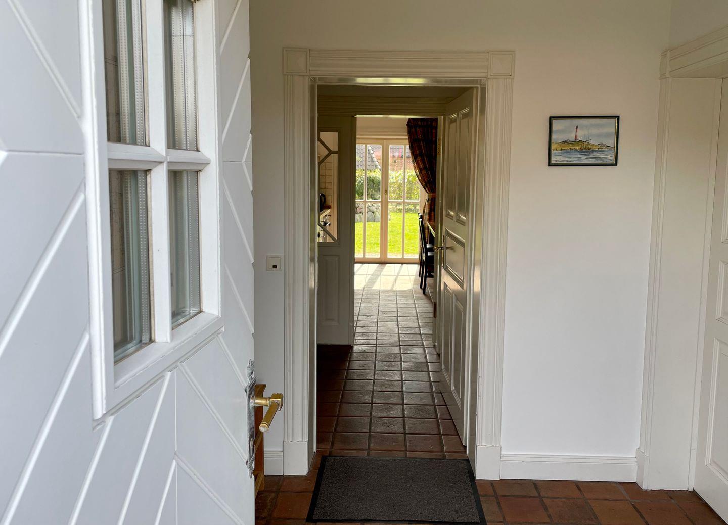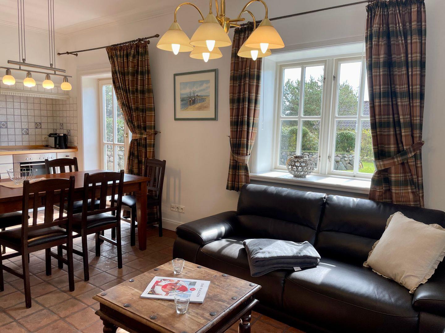 Familienfreundliche ca. 100 m² große Ferienwohnung für bis zu 4 Personen mit schönem Garten in einem wieder-errichteten traditionellen Offiziershaus am Waldrand in direkter Strandlage im Norden Westerlands. Inklusive WLAN, zugehörigem PKW-Stellplatz sowie Strandkorb (in der Saison).