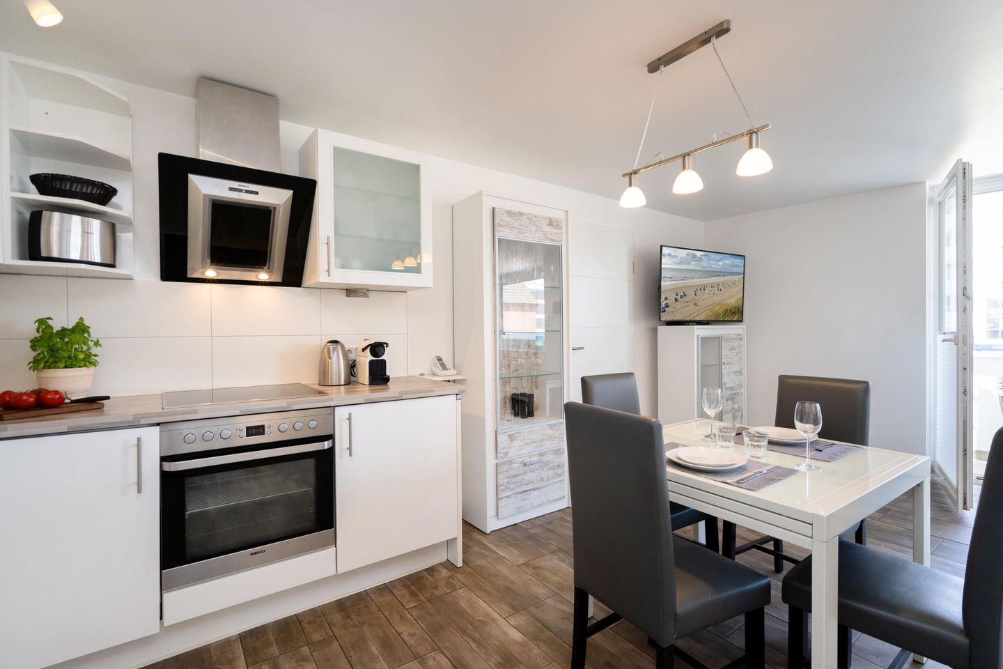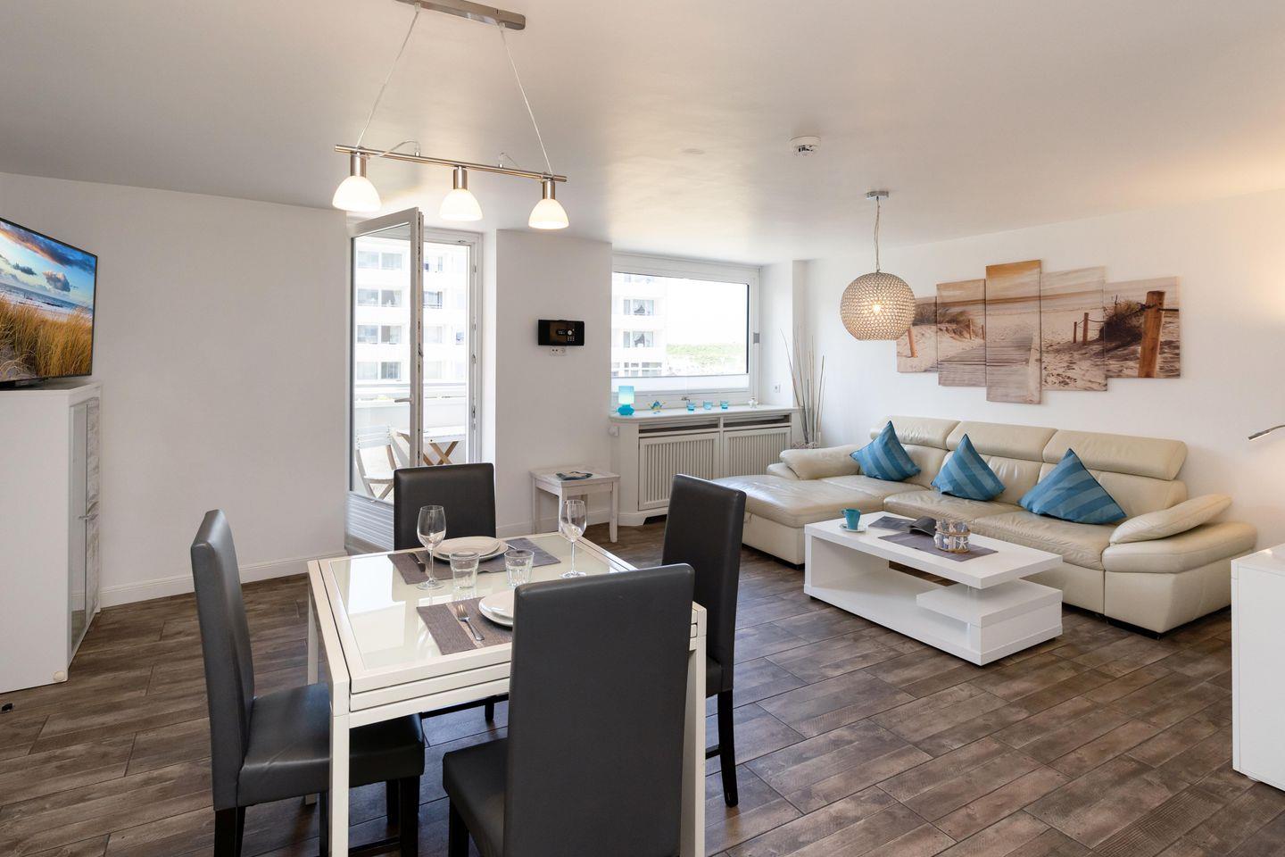 Modernes Apartment in Westerland mit Balkon, WLAN, Tiefgaragenstellplatz und strandnaher Lage für erholsamen Urlaub.