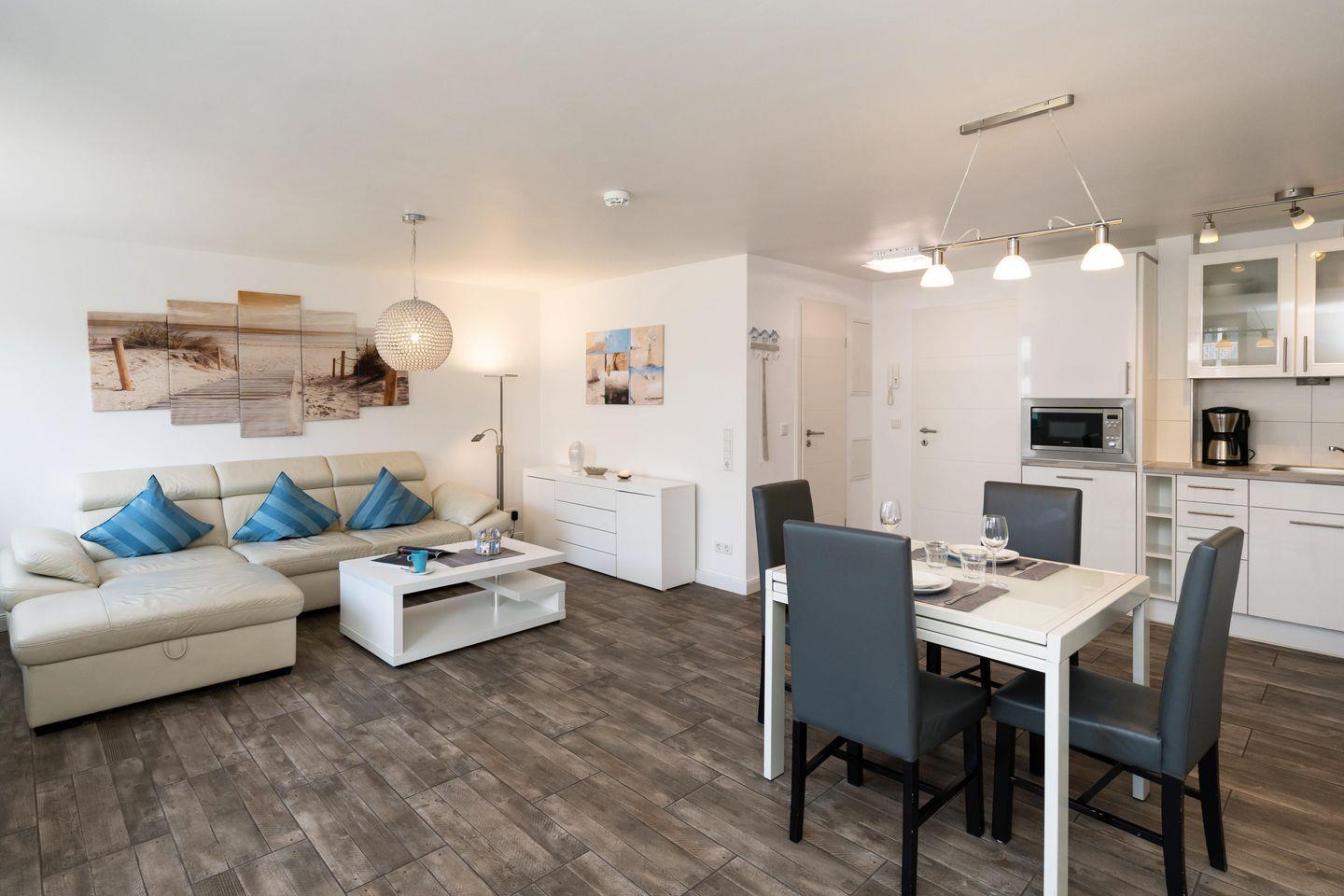 Modernes App., strandnah mit Balkon, PKW-Stellplatz, WLAN. Haustiere erlaubt.