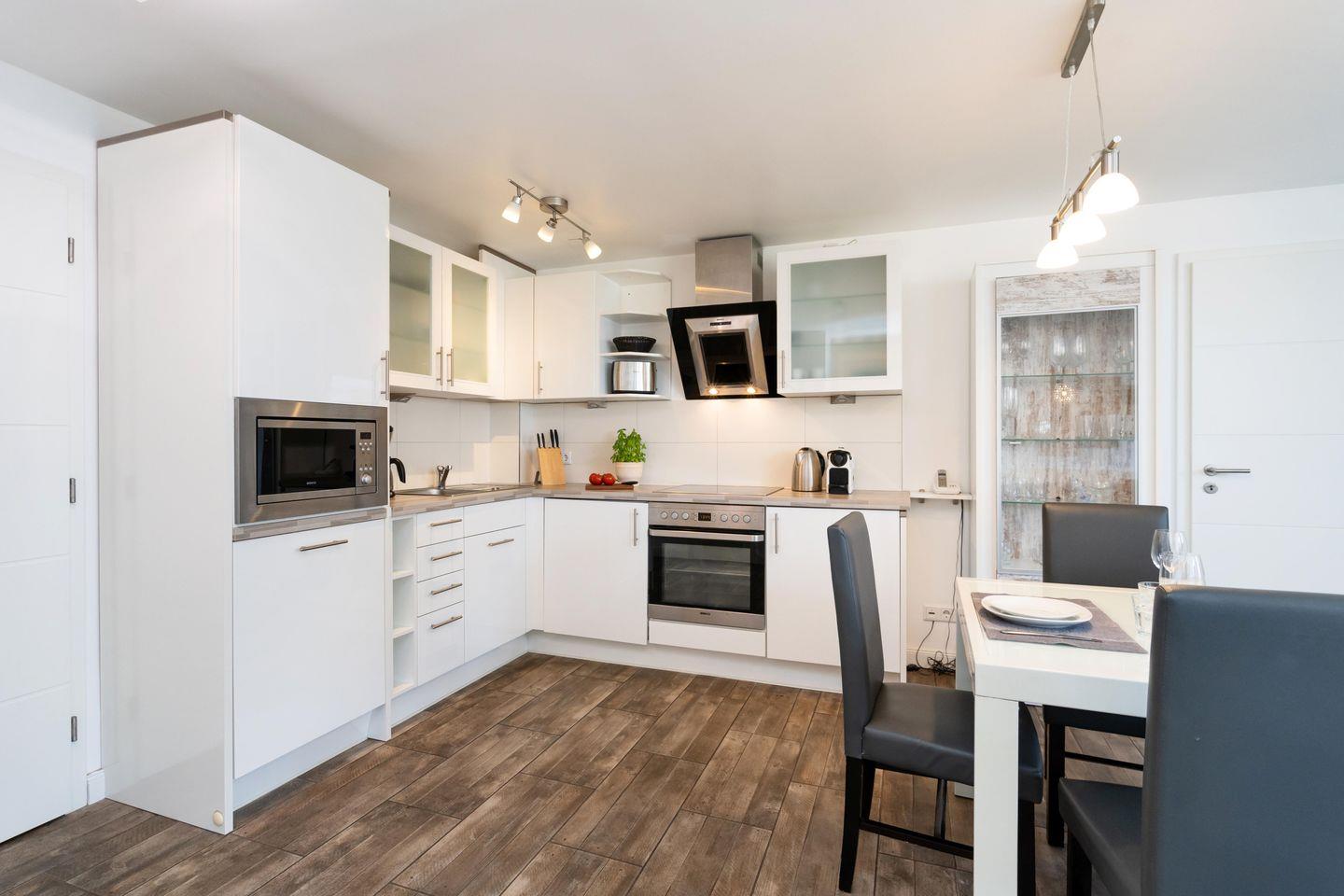 Diese moderne ca. 49 m² große 2-Zimmer Ferienwohnung für bis zu 2 Personen befindet sich im ersten Stock eines Appartementhauses in einer stadt- und strandnahen Lage von Westerland. Es erwartet Sie eine offene, voll ausgestattete Küche mit angrenzendem Wohn- und Essbereich. Das großzügige Ledersofa sowie ein 47 Zoll Smart TV laden zur absoluten Entspannung ein. Durch das Ausziehen des Sofas entsteht eine weitere Schlafmöglichkeit. Das gemütliche Doppelschlafzimmer ist mit einem Flat TV ausgestattet und bietet durch Einbauschränke viel Stauraum. Das moderne Badezimmer verfügt über eine Dusche. Nutzen Sie gerne den schönen Westbalkon mit Blick auf den Strandübergang „Brandenburger Strand.“ Kostenloses WLAN, ein zugehöriger Tiefgaragenstellplatz (Einfahrtshöhe ca. 190 cm, Breite ca. 230, Länge ca. 440 cm) sowie eine Waschmaschine stehen Ihnen zur Verfügung. Haustiere sind erlaubt.