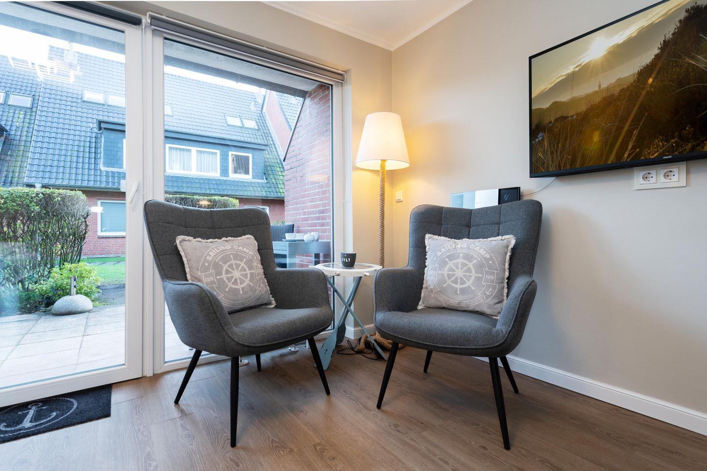 Modernes Appartement für bis zu 2 Personen mit schöner Südterrasse in ruhiger Lage von Westerland. Inklusive WLAN, zugehörigem PKW-Stellplatz sowie Strandkorb (in der Saison).