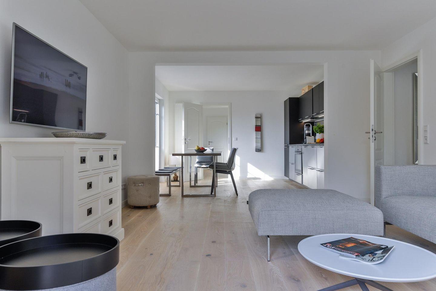 Dieser moderne ca. 85 m² große, freistehende 5-Sterne Bungalow für bis zu 4 Personen befindet sich in einer zentralen Lage von Westerland und bietet Ihnen eine Kombination aus hochwertiger Ausstattung sowie absoluten Komfort. Es erwartet Sie eine offene, moderne Wohnküche mit einem angrenzenden, lichtdurchfluteten Wohn- und Essbereich sowie zwei komfortable Doppelschlafzimmer. Die zwei Badezimmer verfügen jeweils über eine hochwertige Ausstattung samt Regenwalddusche. Absolute Entspannung bietet Ihnen der separate Wellnessbereich, ausgestattet mit einer großzügigen Sauna. Nutzen Sie zudem gerne eine der drei Terrassen sowie den angrenzenden Garten mit Gartenmöbeln und einem Strandkorb (in der Saison). Kostenloses WLAN, Flat TVs in den Wohn- und Schlafräumen, ein zugehöriger PKW-Stellplatz vor dem Haus, eine Waschmaschine sowie ein Wäschetrockner stehen Ihnen zur Verfügung. Haustiere sind nicht erlaubt.