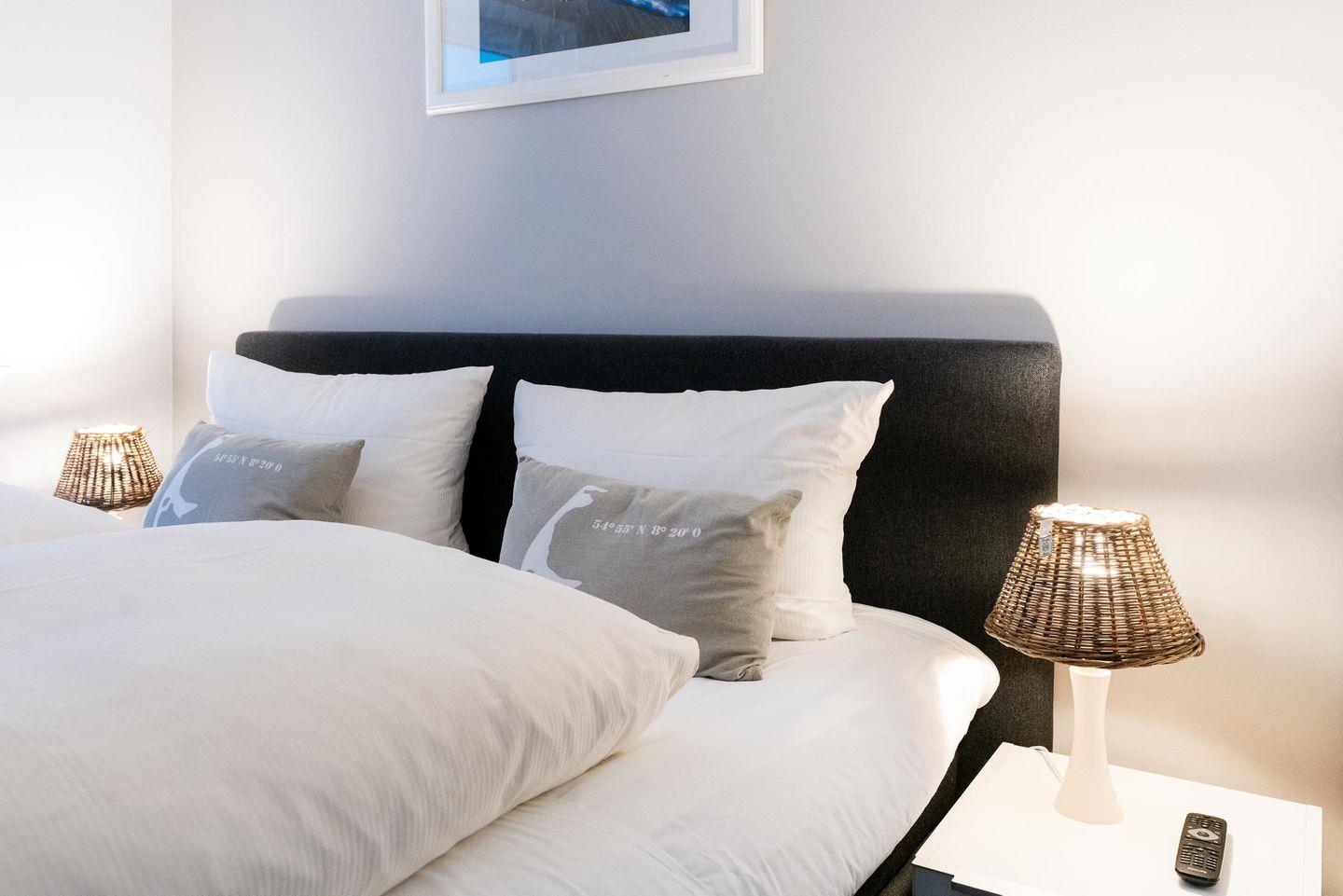Der großzügig geschnittene Wohnbereich im Erdgeschoss vereint eine gemütliche "Relax-Ecke", den Essbereich sowie die offene Küche. Schickes Design und harmonisch abgestimmte Farben sorgen hier schnell für ein Zuhause-Gefühl. Ebenfalls im Erdgeschoss befindet sich auch das Gäste-WC. Eine Treppe tiefer laden zwei muckelige Schlafzimmer mit Boxspringbetten zu süßen Träumen ein und auch das helle Duschbad lässt nichts an Komfort vermissen.
