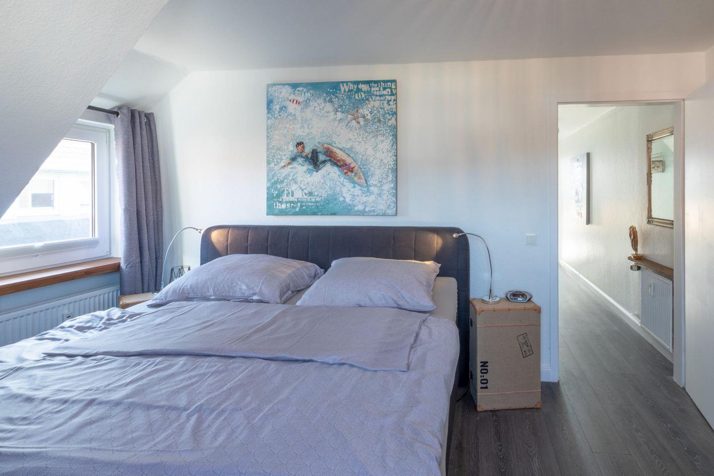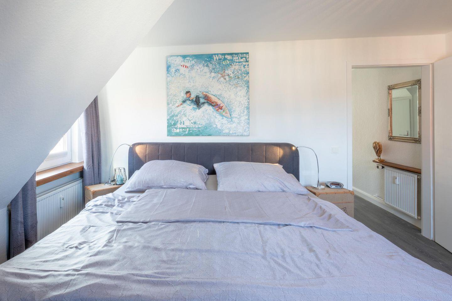 Das Schlafzimmer ist mit einem Boxspringbett (180 x 200) ausgestattet.