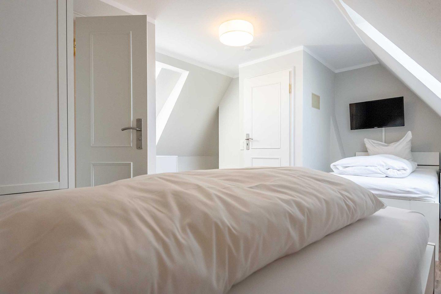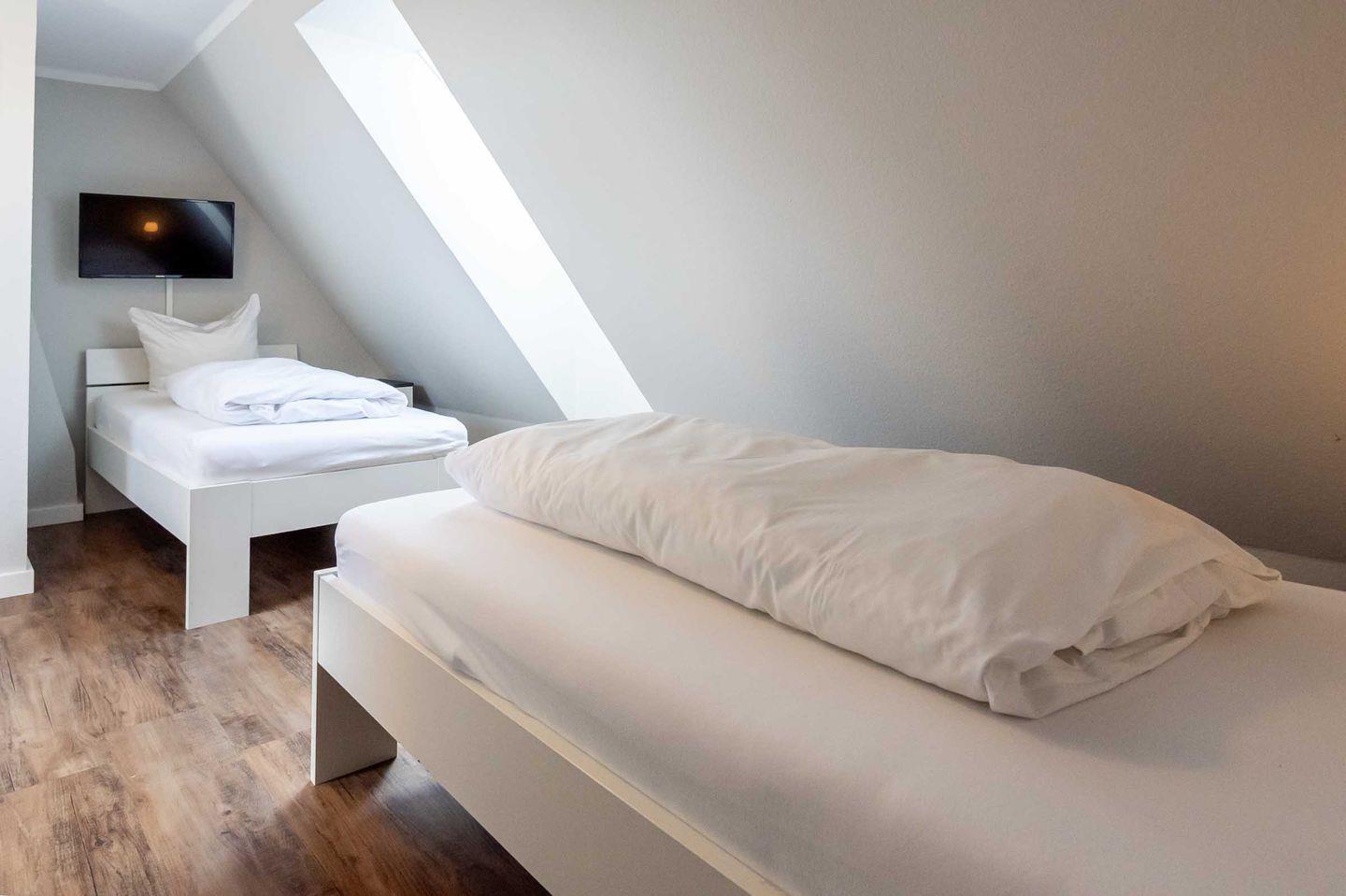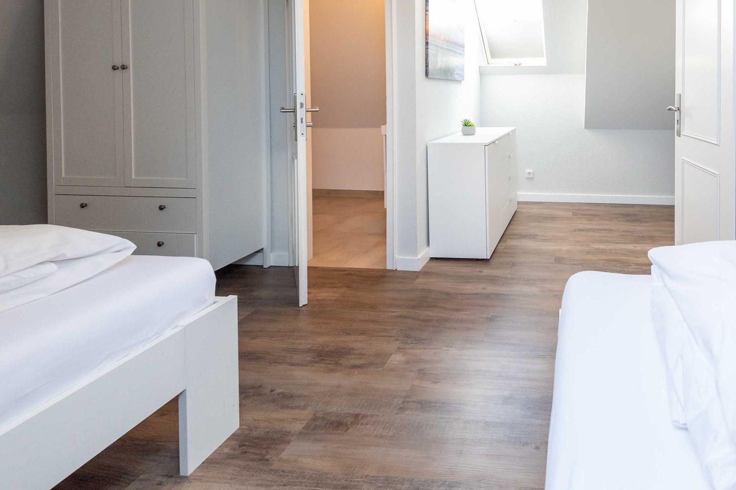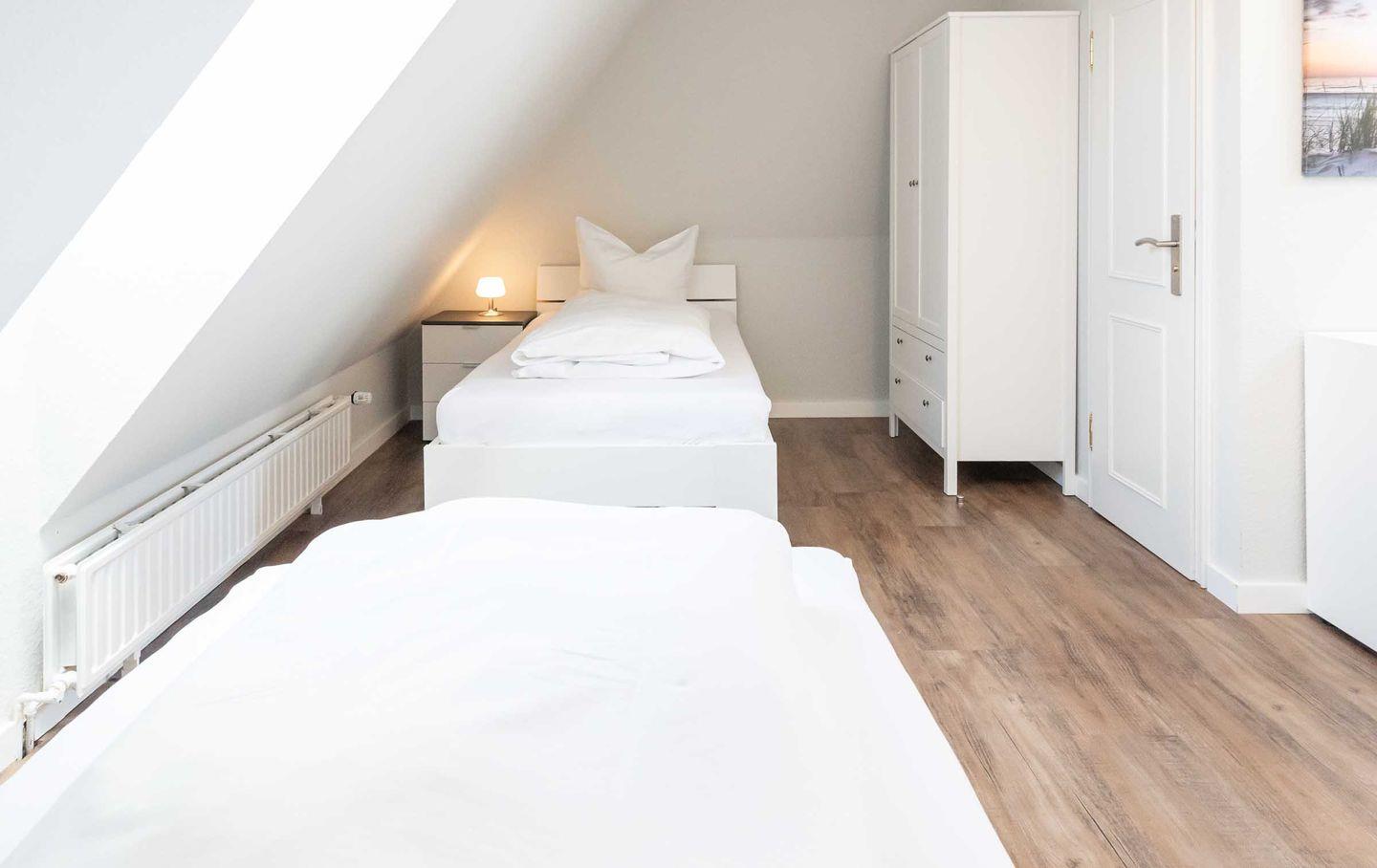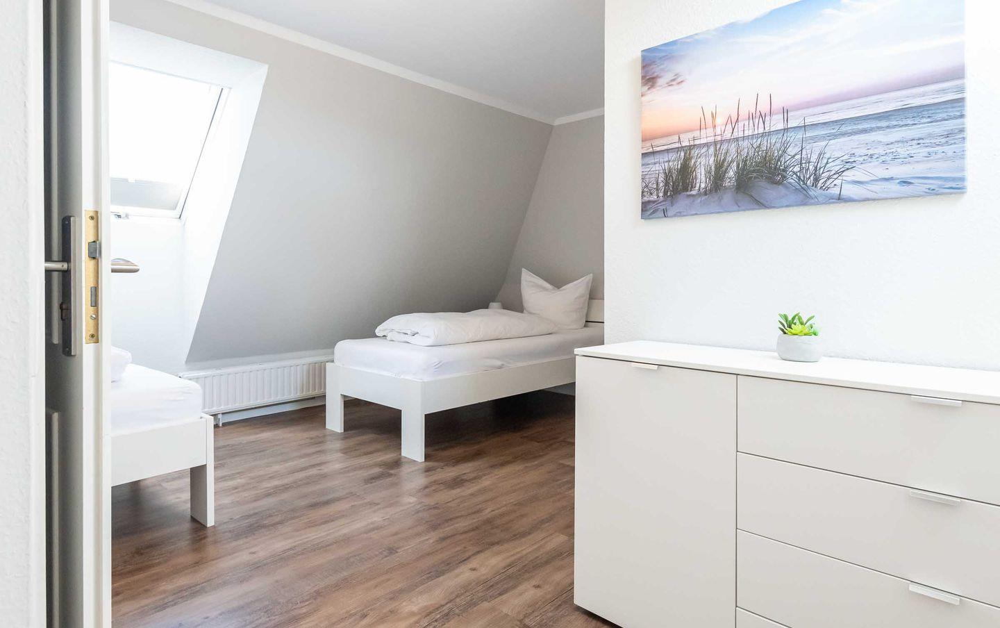 Schlafzimmer 3: Schlafzimmer mit zwei Einzelbetten (je 1,00 x 2,00m), Kommode und TV.