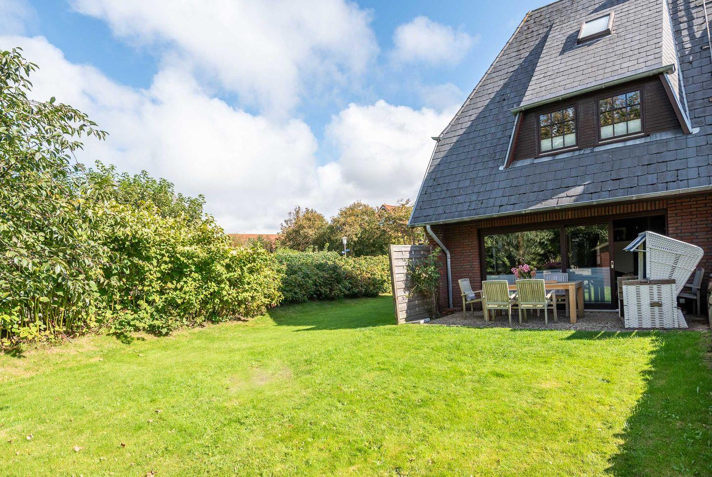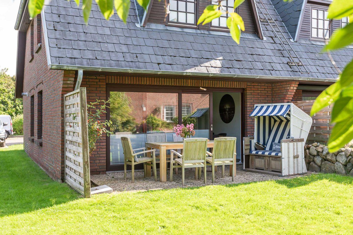 Vom Wohn-/Esszimmer gelangen Sie auf die möblierte West-Terrasse und in den schönen Garten, der komplett mit einem sylt-typischen Friesenwall eingefriedet ist.