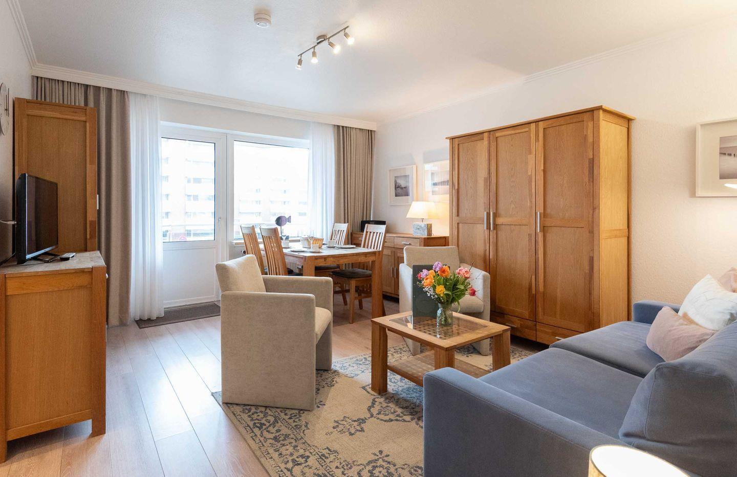 Für den Sylturlaub in Westerland bietet diese 2-Zimmerwohnung mit 45 m² Größe die ideale Basis. Bis zu 4 Personen verbringen hier traumhaftschöne Ferien in bester Strandlage. Helle Atmosphäre und großer Balkon inklusive.