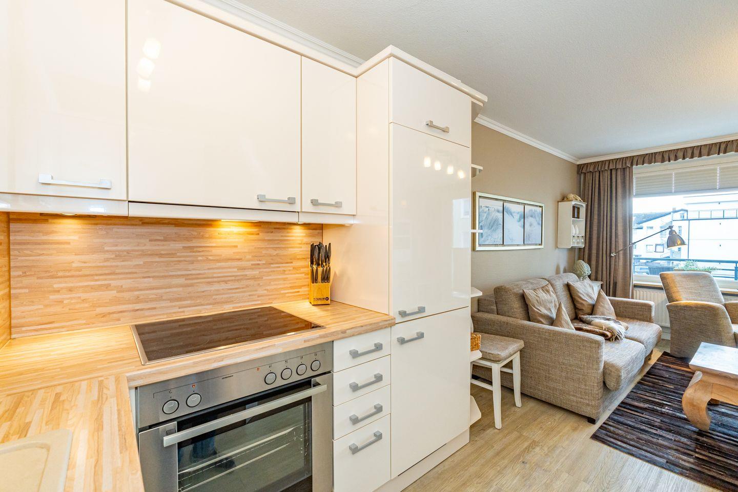 Das Appartement 19 im Haus Dünenburg begrüßt Sie in zentraler Lage von Westerland auf Sylt. Die Unterkunft bietet Ihnen auf etwa 40 Quadratmetern Wohnfläche eine moderne und zugleich komfortable Ausstattung, die Ihren Aufenthalt auf der Nordseeinsel angenehm und entspannt gestaltet. Das Zwei-Zimmer-Appartement ist besonders für Einzelreisende oder Paare geeignet, die Wert auf Funktionalität, Komfort und ein stilvolles Ambiente legen. Im offenen Wohn- und Essbereich befindet sich eine hochwertige, zum Wohnzimmer hin offene Küche, die mit Cerankochfeld, Backofen, Geschirrspüler, Kaffeemaschine, Wasserkocher, Eierkocher, Toaster sowie Kühlschrank mit Gefrierfach voll ausgestattet ist. Geschirr und Besteck sind ebenfalls vorhanden und ermöglichen Ihnen eine unkomplizierte Selbstversorgung während Ihres Aufenthalts.
