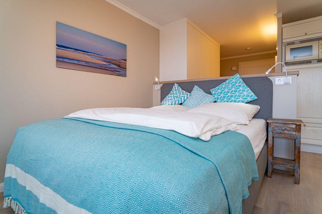 Moderne 1-Zimmer-Ferienwohnung im Hanseatenhaus Westerland mit Balkon und bester City-Lage nahe Strand und Promenade.