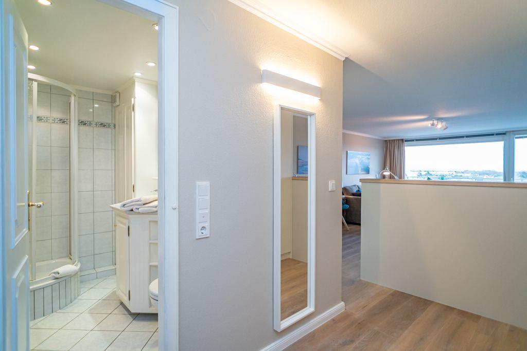 Moderne 1-Zimmer-Ferienwohnung im Hanseatenhaus Westerland, zentral, mit Balkon und Pkw-Stellplatz.
