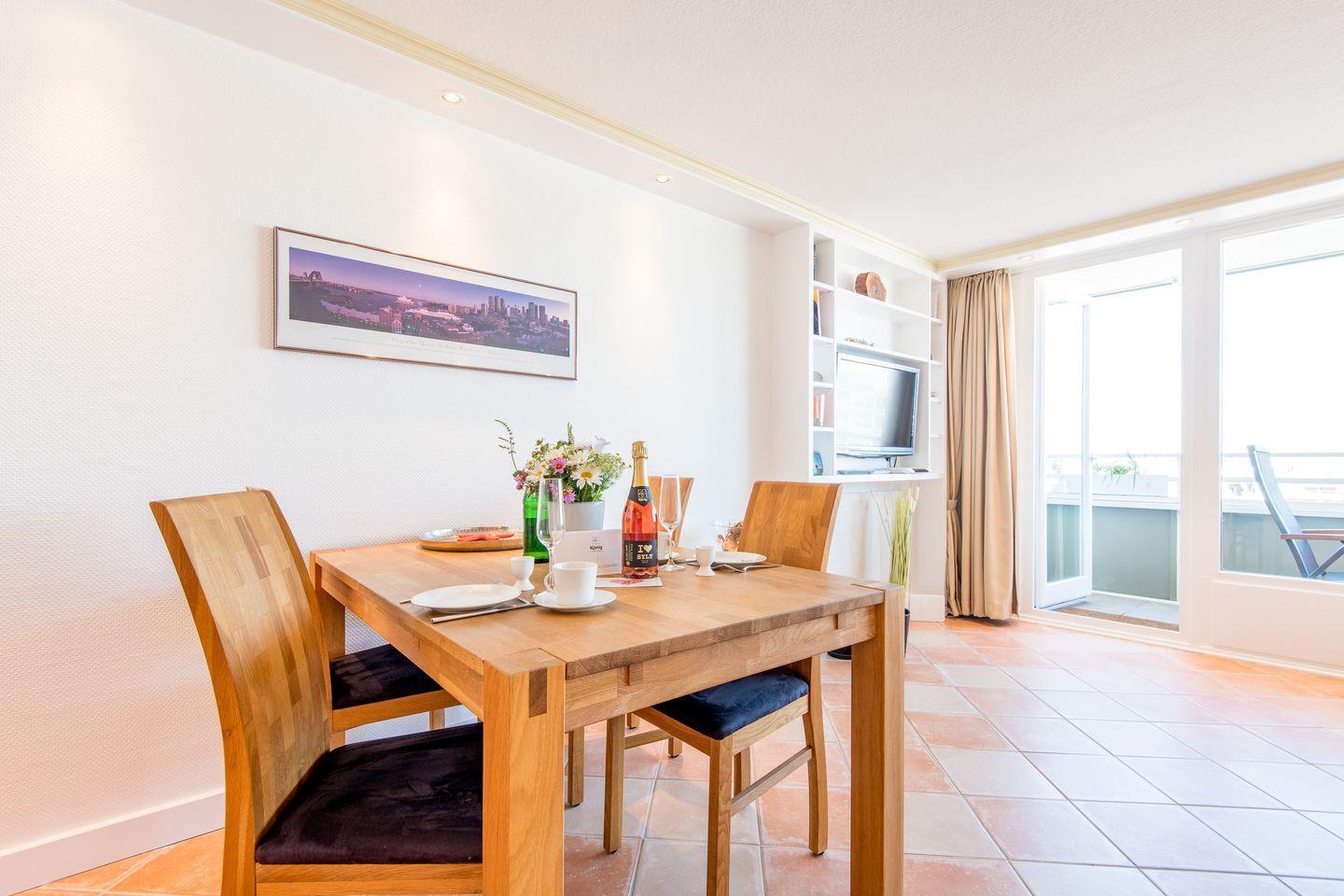 1-Zimmer-Ferienwohnung auf einer Ebene (7. OG) in Westerland mit ca. 42 qm für bis zu 2 Personen.