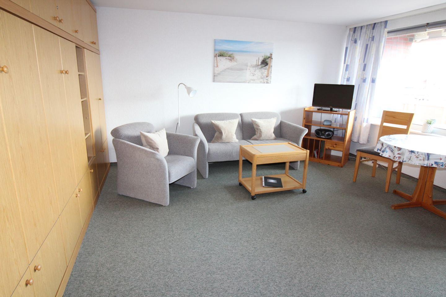 Gemütliches 1-Zimmer-Appartement mit Ostblick in der Nordseeresidenz auf Sylt, ideal für entspannte Tage am Meer.