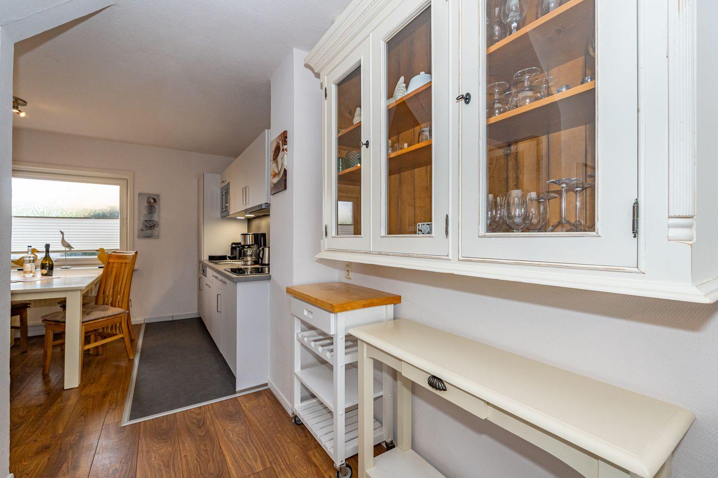 Die Ferienwohnung 1 im Haus Strandberg verfügt über einen kleinen Flur, über den man in das Duschbad mit WC und in den offenen Wohn- und Essbereich gelangt. Die offenen Küche ist ausgestattet mit einem Geschirrspüler, Kaffeemaschine, Nespressomaschine und Ceranfeld. Von dort aus geht es in den gemütlichen Wohnbereich mit Schlafsofa, welches mit einem Fernseher und einem DVD-Player ausgestattet ist. Das Schlafzimmer mit Doppelbett und einem geräumigen Kleiderschrank ist über das Wohnzimmer erreichbar. Im Sommer stehen Ihnen im Gemeinschaftsgarten 2 Strandkörbe zur Verfügung. Der Garten kann von allen 3 Parteien des Hauses genutzt werden. Die Ferienwohnung verfügt über einen WLAN-Anschluss. Kostenfreie Parkmöglichkeiten finden Sie an der Straße direkt am Haus. Ein guterzogener Hund ist nach vorheriger Anmeldung erlaubt (10,- € pro Tier/Tag).