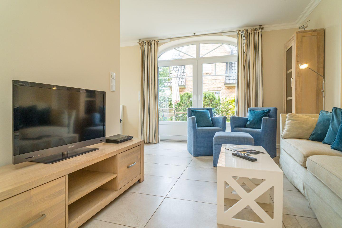 Strand- und stadtnah liegt diese 4- Zimmer-Ferienwohnung (ca.108 qm) mit Wellnessbereich im Herzen von Westerland. Diese exklusive Ferienwohnung mit großem Garten und Terrasse in Süd- West- Ausrichtung besticht neben der sehr hochwertigen Einrichtung durch helle und freundlich gestaltete Räume, sowie den großzügigen Wellnessbereich für entspannte Stunden. Im Erdgeschoss dieser schönen Ferienwohnung befinden sich das gemütliche Wohnzimmer mit Flatscreen und direktem Zugang zur Terrasse, mit Terrassenmöbeln und einem Strandkorb (saisonal, April-Oktober) und dem großen Garten. Die vollständig eingerichtete offene Küche (inkl. Induktionsherd) mit Essbereich, sowie ein Schlafzimmer mit Doppelbett, Flatscreen und genügend Stauraum und ein Duschbad mit WC befinden sich ebenfalls auf dieser Ebene. Im Souterrain befinden sich zwei weitere Schlafzimmer, eines mit einem Doppelbett (mit Flatscreen TV) und eines mit einem Einzelbett. Weiter finden Sie hier eine Waschmaschine und einen Trockner. In der gesamten Wohnung befinden sich geräumige, weiße Einbauschränke die Ihnen viel Stauraum bieten. Das Highlight dieser Ferienwohnung erwartet Sie ebenfalls im Souterrain. Der exklusive Wellnessbereich mit Sauna, Badewanne und Regendusche lässt auch an stürmischen Tagen keine Wünsche offen und sorgt für Entspannung pur. Ein Pkw-Stellplatz steht Ihnen direkt an der Ferienwohnung zur Verfügung. Haustiere sind in dieser Ferienwohnung nicht erlaubt. Bitte beachten Sie, dass dies eine Nichtraucherwohnung ist.