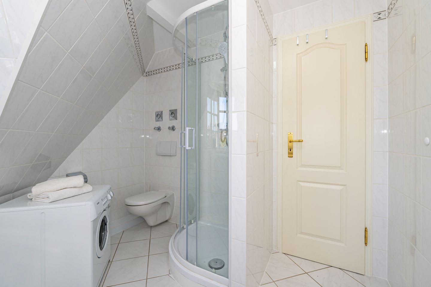Im neu sanierten 2024 geräumigen, angrenzenden Duschbad mit WC und Föhn mit Fenster steht Ihnen eine Waschmaschine zur Verfügung.