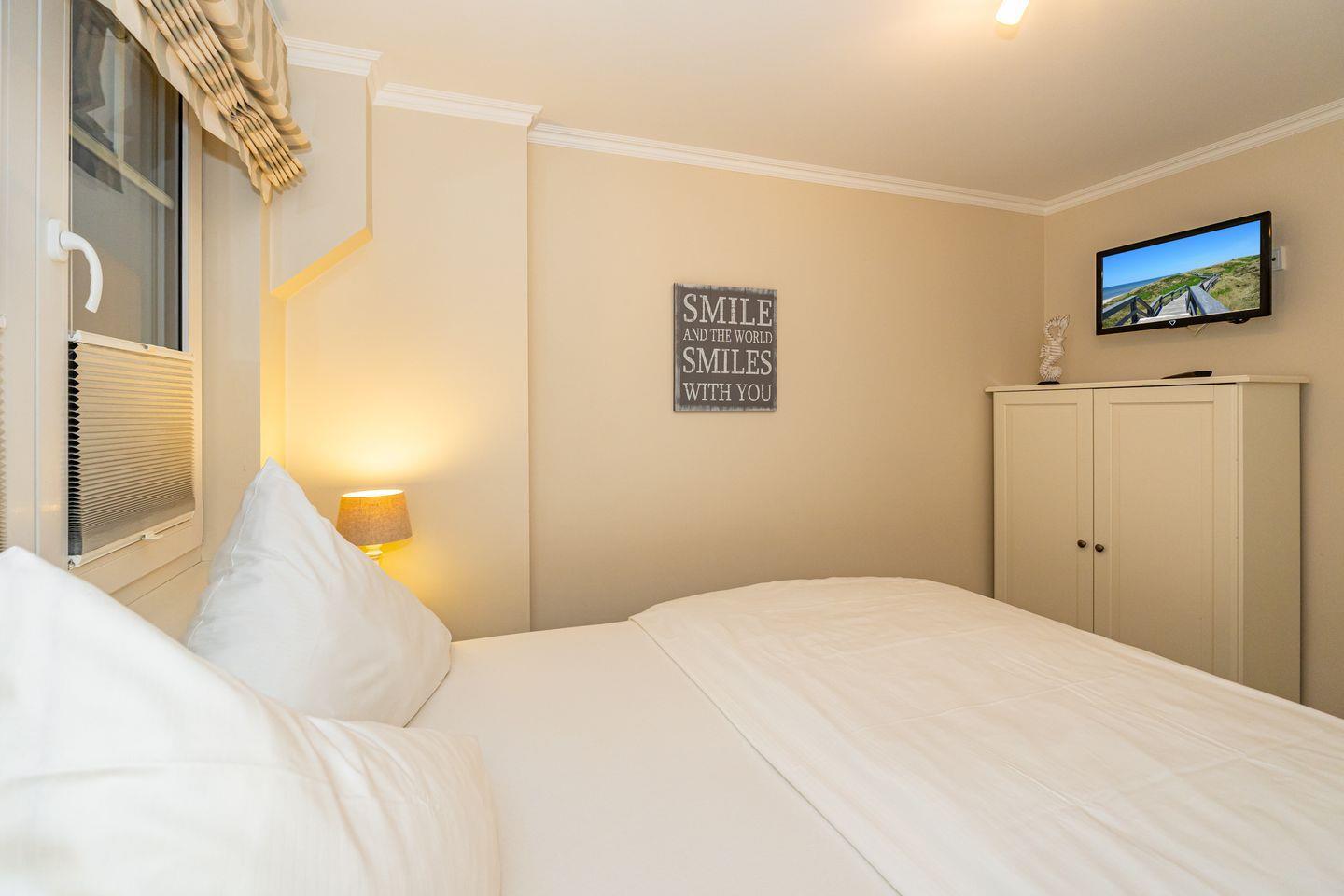 Das offene Wohnkonzept verbindet eine komfortable Sofaecke mit einem Essbereich, wo Sie gemütliche Abende mit Ihren Liebsten verbringen können. Für Unterhaltung sorgt der TV im Wohnzimmer und die Wohnatmosphäre wird durch die Fußbodenheizung besonders behaglich. Von hier haben Sie Zugang zur eigenen West-Terrasse mit Garten, sylttypischen Friesenwall, Strandkorb und Gartenmöbeln (saisonal). Die voll ausgestattete offene Küche lässt keine Wünsche offen. Hier finden Sie alles, was Sie zur Zubereitung Ihrer Lieblingsgerichte benötigen, einschließlich Backofen, Cerankochfeld, Spülmaschine, Mikrowelle und Kühlschrank mit Gefrierfach. Ebenfalls auf dieser Eben befindet sich das Duschbad, mit WC und Waschbecken,. Über eine Treppe gelangt man nach unten ins Souterrain. Hier befinden sich zwei Schlafzimmer mit TV. Hier ist auch das zweite Bad mit bodentiefer Dusche, Handtuchtrockner und WC sowie einer Wanne, um sich an kalten Wintertagen zu entspannen und aufzuwärmen. Zu Ihrer Verfügung stehen ebenfalls eine Waschmaschine und ein Trockner. Der PKW-Stellplatz befindet sich direkt vor dem Haus.