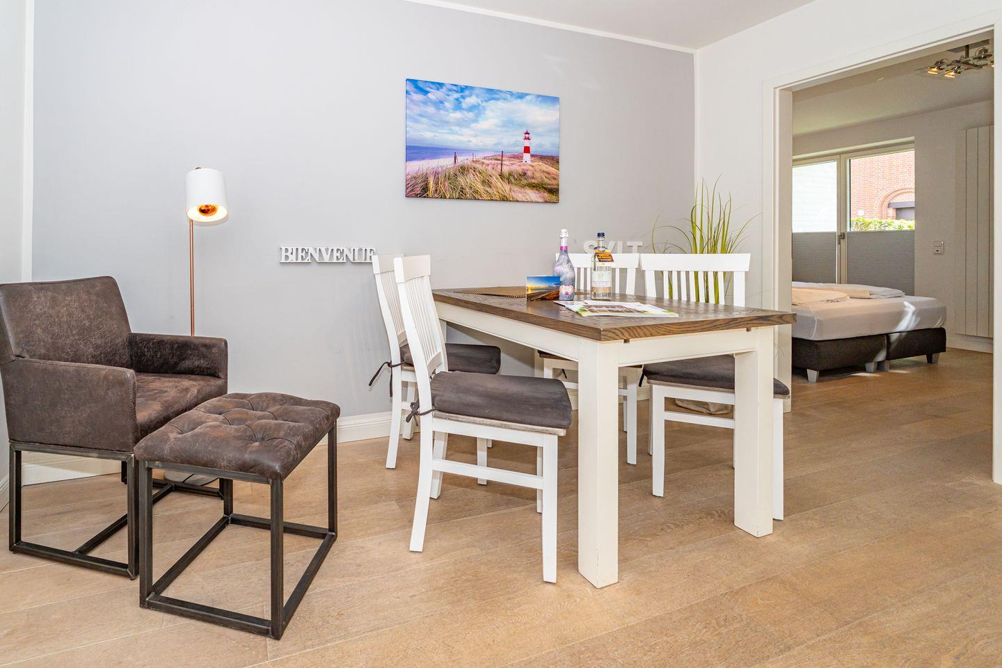 Komfortable ebenerdige Ferienwohnung in Westerland, stadtnah und nur 700 m vom Strand entfernt, mit Terrasse und moderner Ausstattung.