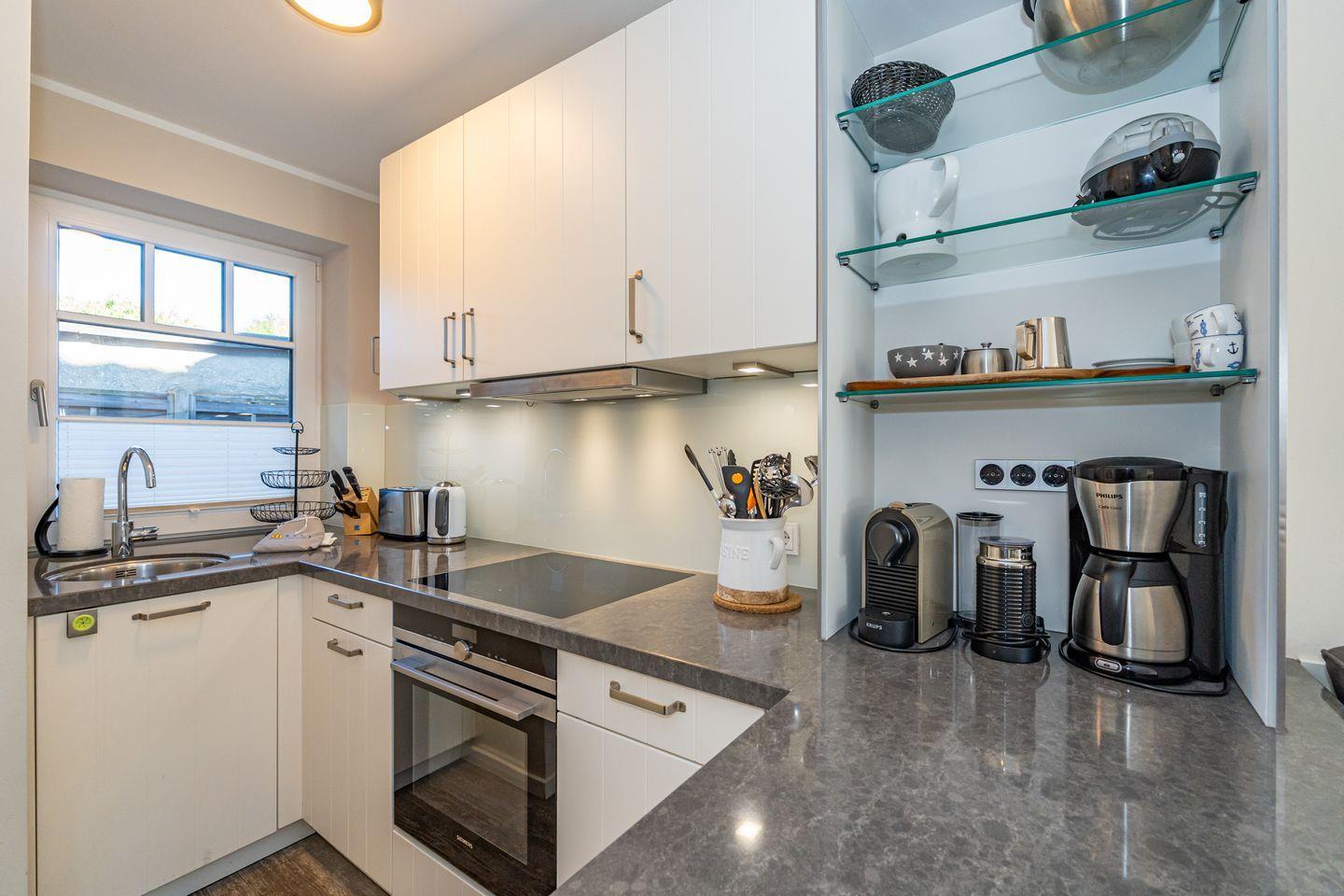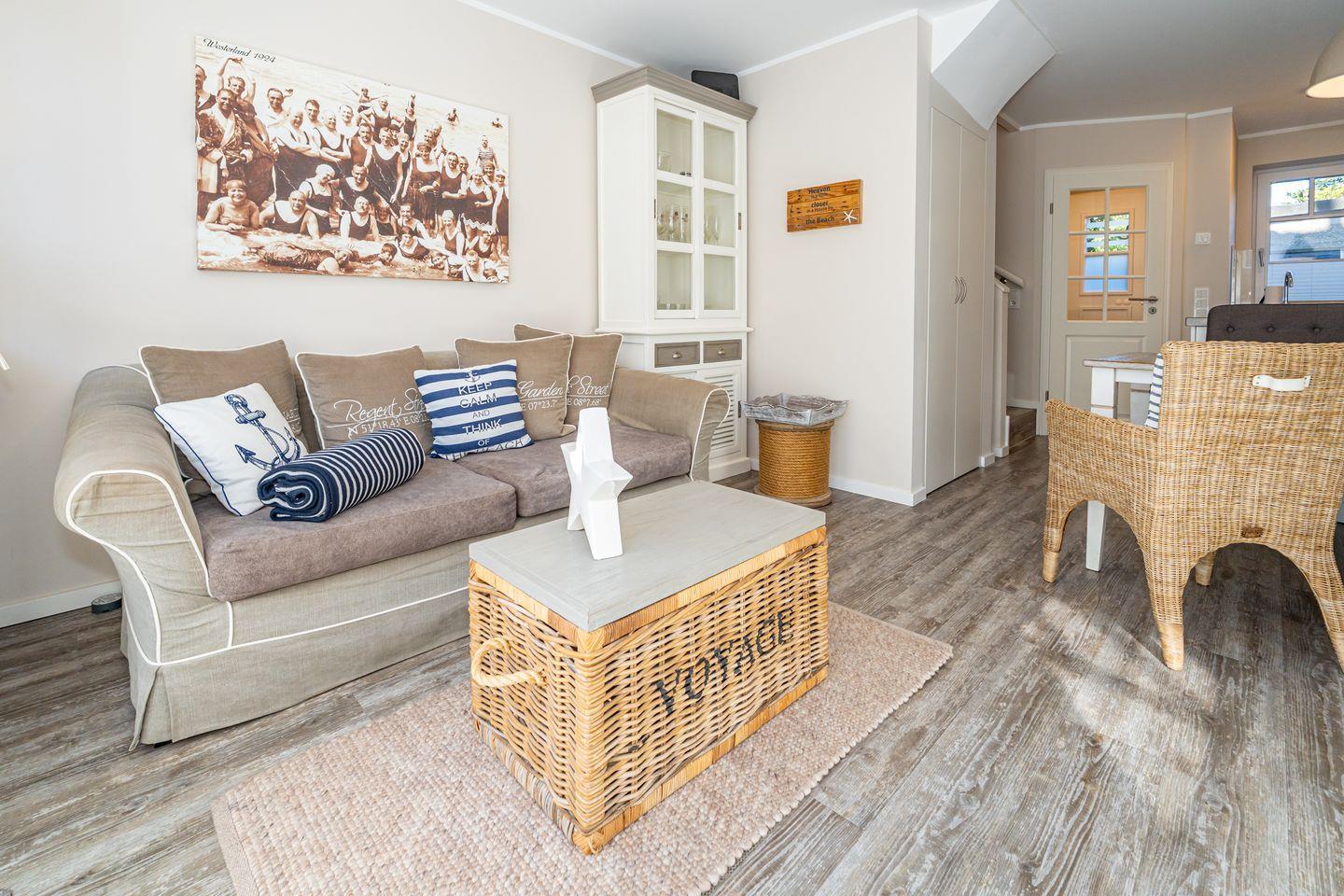 Das Ferienhausteil erstreckt sich über zwei Ebenen (ca. 58 qm, EG,OG) und bietet bis zu zwei Erwachsenen und ein Baby bis 3 Jahre genügend Raum für eine erholsame Auszeit. Im Erdgeschoss befindet sich ein Gäste-WC, sowie der offen gestaltete Küchenbereich mit hochwertigen Einbaugeräten inkl. Nespresso Maschine, Geschirrspüler und Backofen. Dort angrenzend befindet sich der Wohn- und Essbereich mit Flatscreen und Soundsystem und direktem Zugang zu Terrasse und Garten. Die Sonnenterasse in Südausrichtung mit Möblierung und Strandkorb (saisonal) lädt zum Entspannen und Genießen ein. Über eine Treppe gelangt man in das erste Obergeschoss mit dem gemütlichem Schlafzimmer, selbstverständlich mit einem Boxspring-Bett (180 x 200 cm), hochwertigen Einbauten und Flatscreen. Auf dieser Ebene befindet sich ein modernes Badezimmer mit bodentiefer Dusche und Waschmaschine. Ein PKW Stellplatz ist am Ferienhaus verfügbar. Die tolle Lage vereint Ruhe und Privatsphäre und ist doch wunderbar zentral gelegen. Bitte beachten Sie das diese Ferienwohnung eine Nichtraucherwohnung ist und die Haustierhaltung nicht gestattet ist.