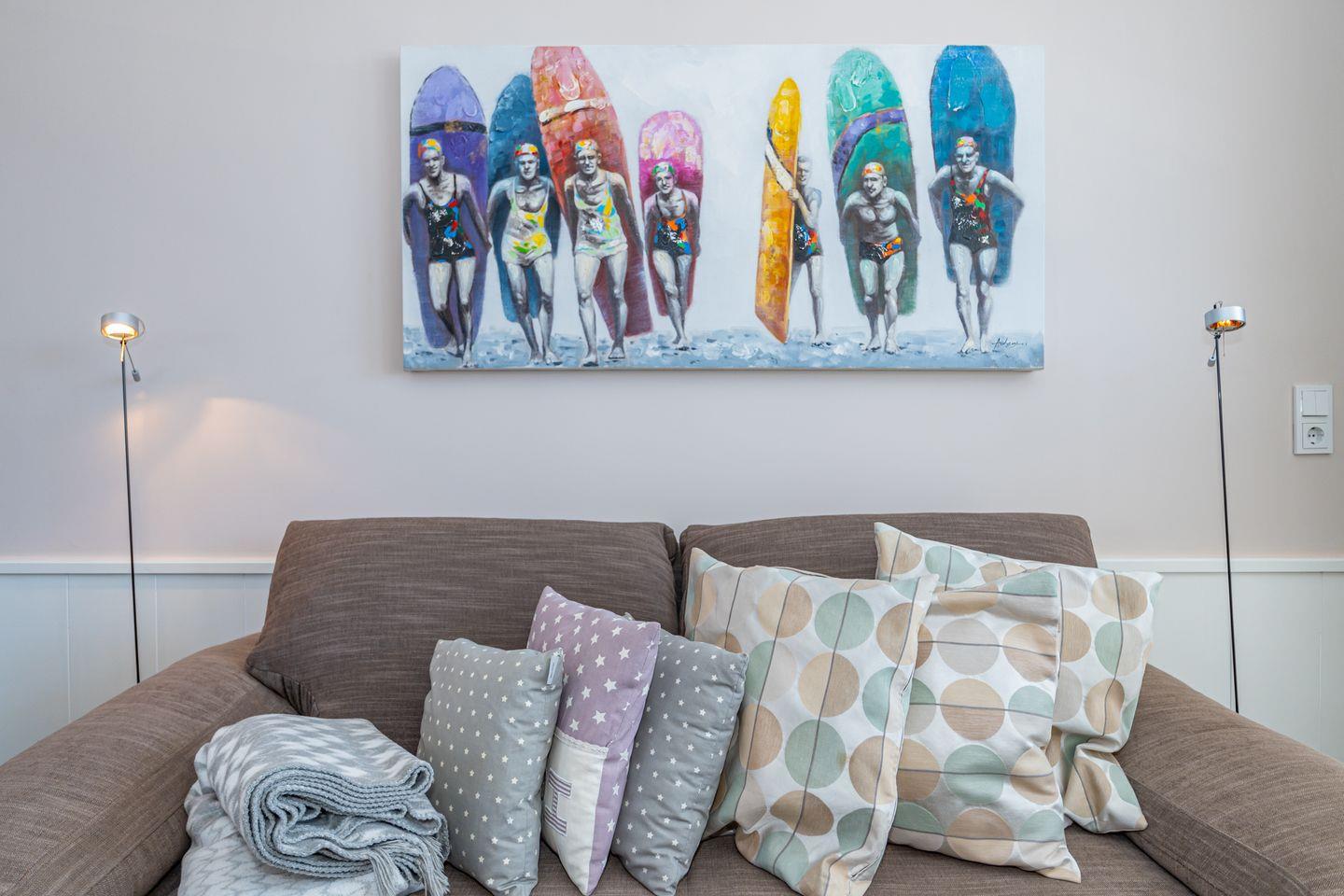 Diese gemütliche Ferienwohnung, direkt am Strand, bietet Ihnen eine eine moderne offene Küche und komfortablen Wohnraum für entspannte Tage. Genießen Sie den Balkon mit Gartenmöbeln und zahlreiche Freizeitmöglichkeiten in der Nähe.