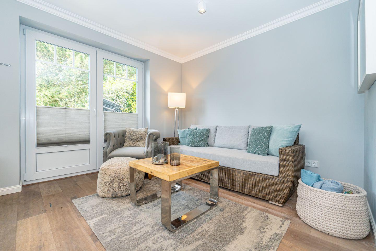 Moderne 3-Zimmer-Ferienwohnung in Westerland mit Sauna und Terrasse im Strandhausstil.