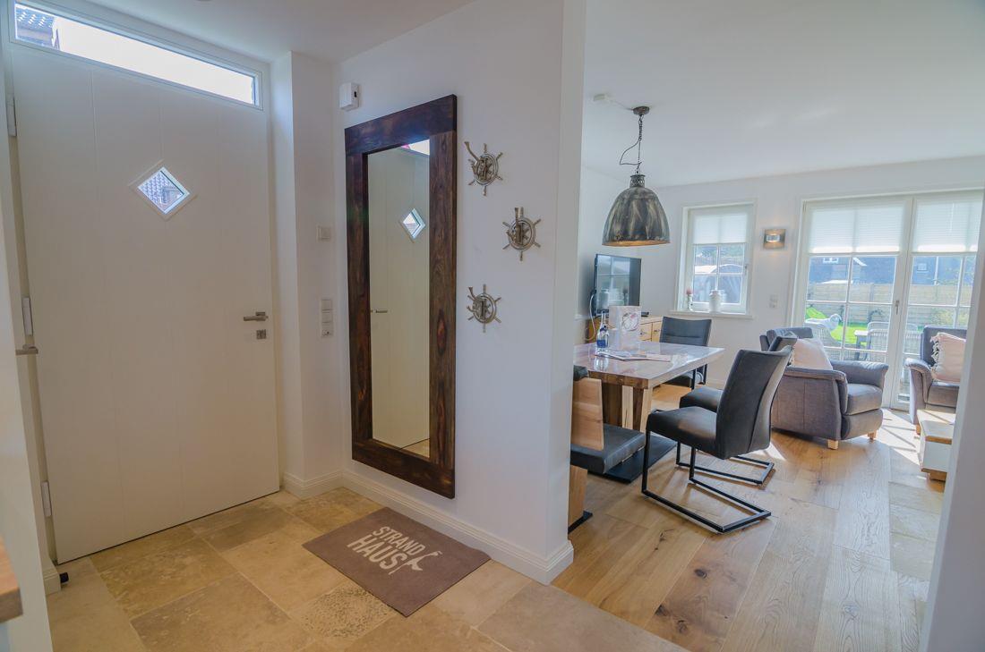Das Hoogen Hüs ist für Ihren Aufenthalt in modernem Strandhaus Style eingerichtet worden. Riviera Maison, Massivholz-Möbel und frische Farben werden Sie begeistern. Der Wohn- und Essbereich wird Ihnen gefallen. Ein Kamin, ein Essbereich, Flat TV, Blue-Ray Player, Bose-Anlage, WLAN, gemütliche Sessel und Sofa lassen keine Wünsche offen. Aus dem Wohnbereich tritt man auf die Terrasse mit Gartenmöbeln und Strandkorb (Saisonal). In der offenen Kücheerwarten Sie eine Nespressomaschine, Backofen und Kühlschrank mit Gefrierfach. Gleichzeitig befindet sich im Erdgeschoss ein Gäste WC. Durch das Treppenhaus gelangen Sie in das Obergeschoss. Dort finden Sie ein Schlafzimmer mit Flat TV und Blue Ray Player, ein Badezimmer mit Natursteinen und Fußbodenheizung, eine Dusche und eine freistehende Badewanne. Die Massivholztreppe führt Sie weiter ins Dachgeschoss, hier finden Sie ein weiteres Schlafzimmer, welches offen zur Treppe ist, mit Doppelbett. Folgt man der Treppe ins Souterrain finden Sie ein weiteres Wellnessbad mit Naturstein Dusche und einer KLAFS Sauna. Ein weiteres Schlafzimmer mit Flat TV steht Ihnen zur Verfügung. Zusätzlich befindet sich hier ein Hauswirtschaftsraum mit einem Waschtrockner. Das komplette Ferienhaus ist mit einer Fußbodenheizung ausgestattet. Ihre Wertsachen können Sie sicher in dem Hauseigenen Safe verwahren. Rauchen ist in diesem Objekt nicht erwünscht. Haustiere dürfen nach vorheriger Anmeldung und gegen Gebühr (10,- € pro Tier/Tag) hier wohnen. Zwei kostenlose Stellplätze gehört zum Objekt. Weitere kostenlose Parkplätze befinden sich in unmittelbarer Nähe.