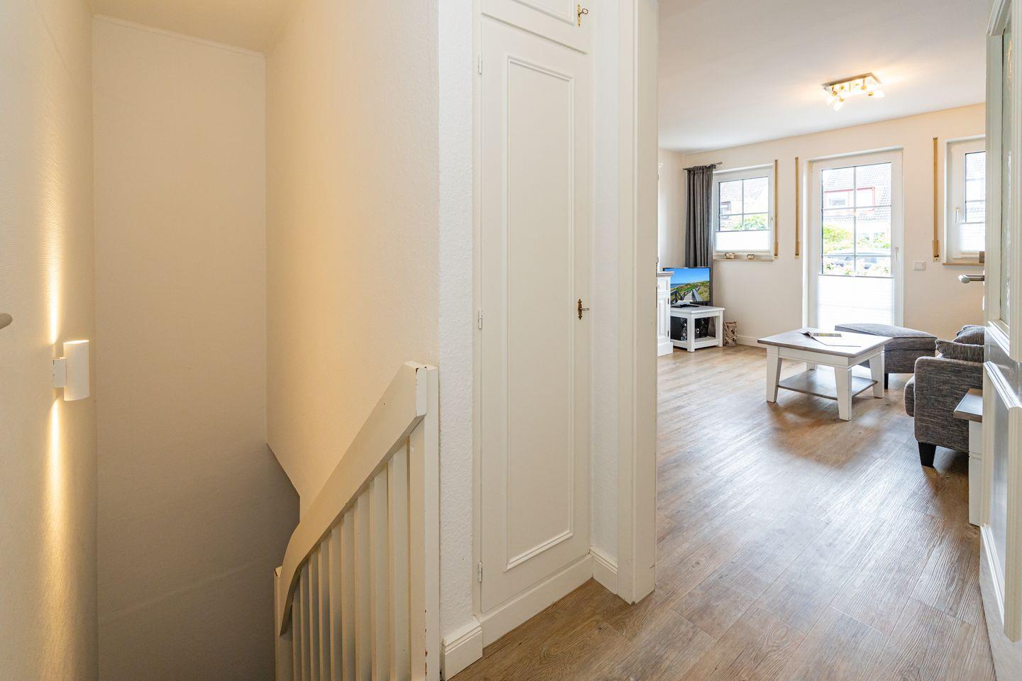 Vom Flur erreichen Sie über eine Treppe ins Souterrain das Schlafzimmer mit Doppelbett, Kleiderschrank, Schlafsessel und TV. Der Flur bietet nochmals viel Schrankfläche und führt direkt ins neu renovierte Duschbad. Im Gemeinschaftswaschraum steht eine Waschmaschine gegen Gebühr bereit. Zur Ferienwohnung gehört ein Pkw Stellplatz. Die Ferienwohnung bleibt Nichtrauchern vorbehalten. Ein guterzogener Hund ist nach vorheriger Anmeldung erlaubt (10,- € pro Tier/Tag).