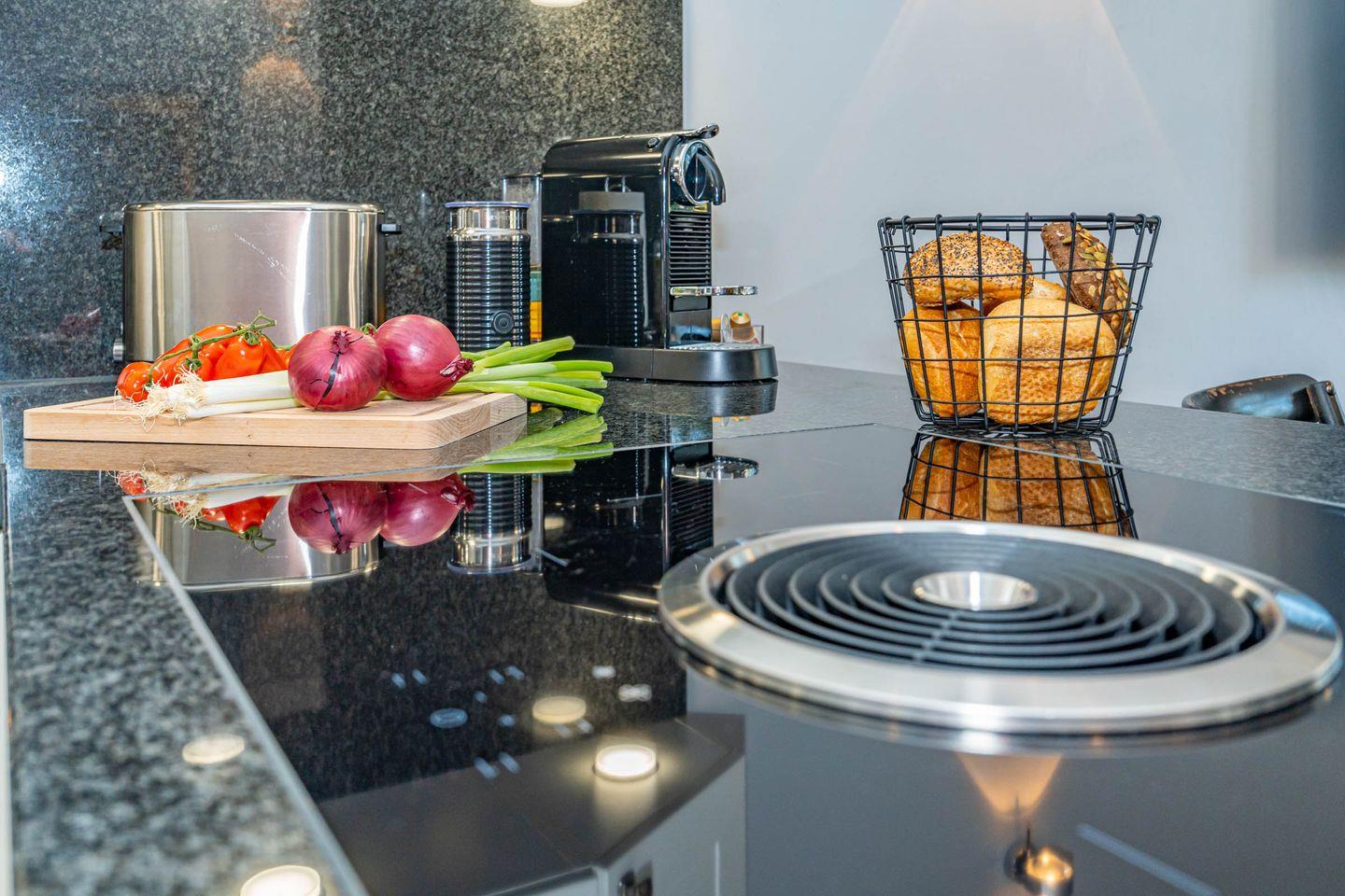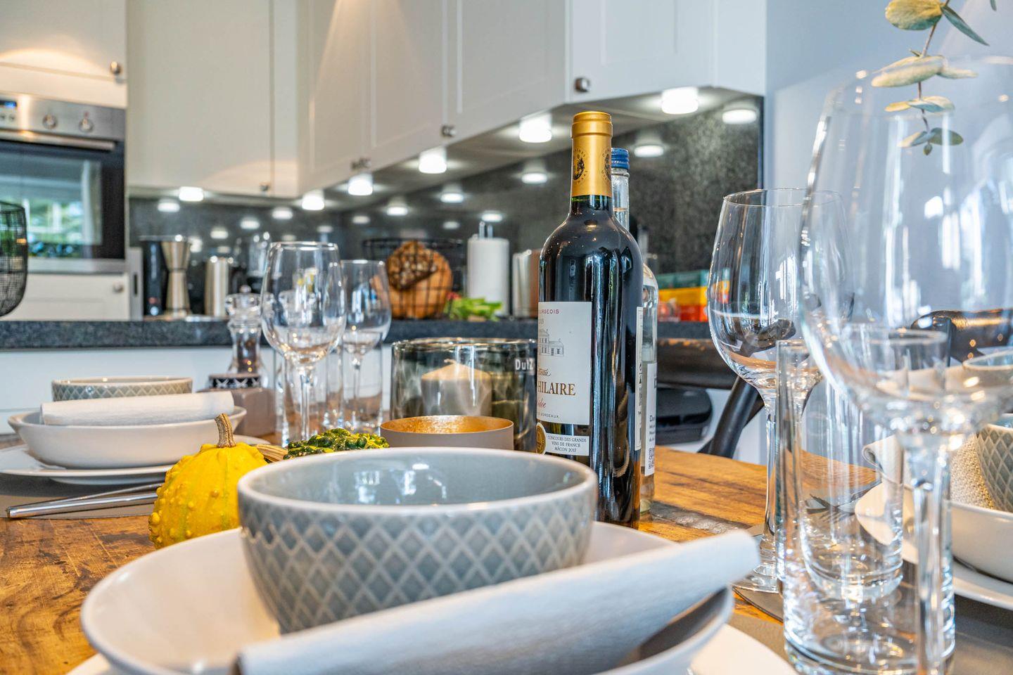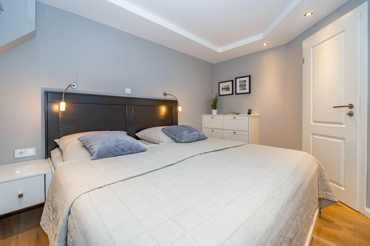 Diese moderne Ferienwohnung bietet Platz für bis zu vier Personen und verfügt über zwei gemütliche Schlafzimmer, eine offene, voll ausgestattete Küche sowie ein einladendes Wohnzimmer mit Zugang zur Terrasse.