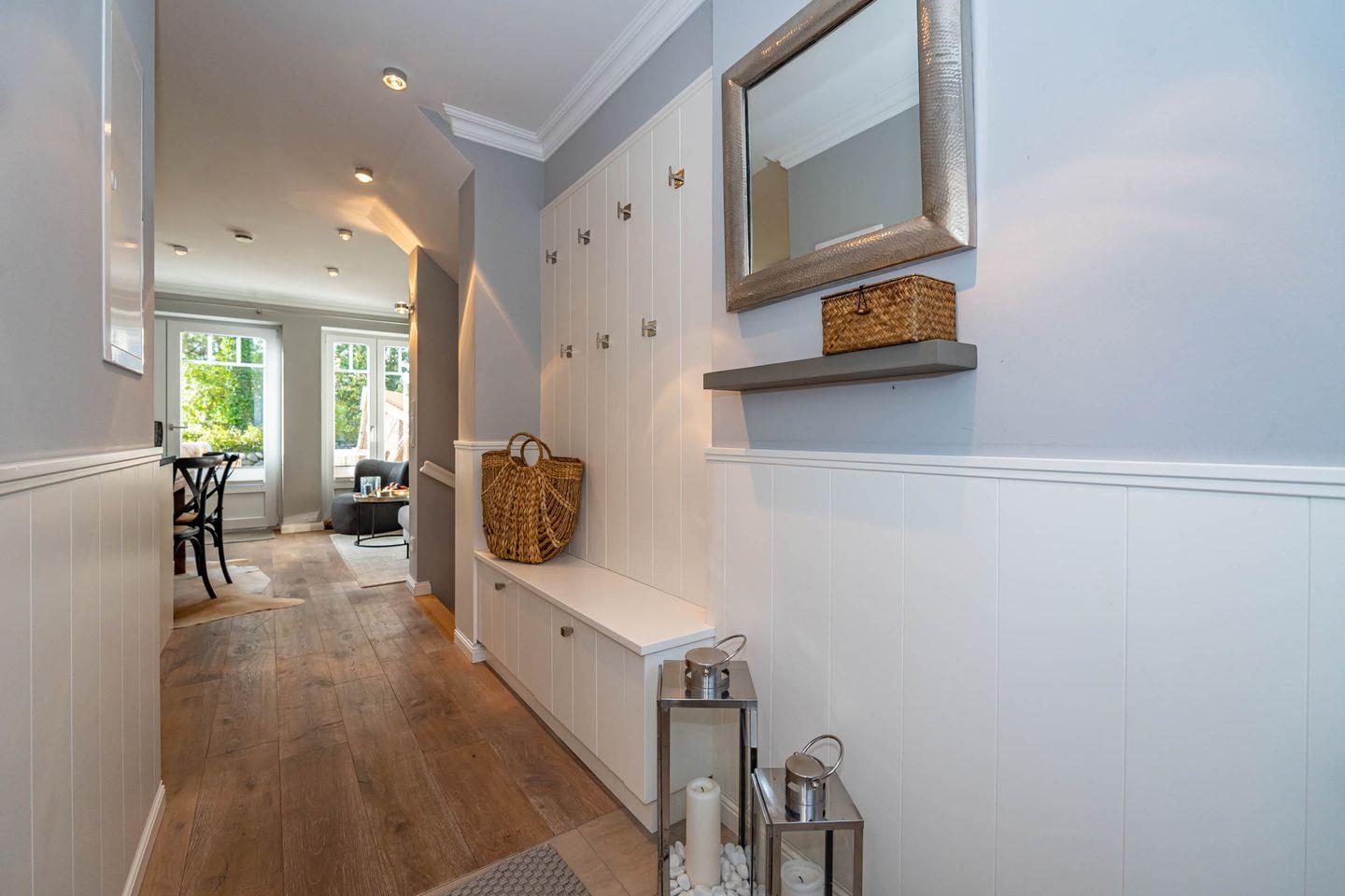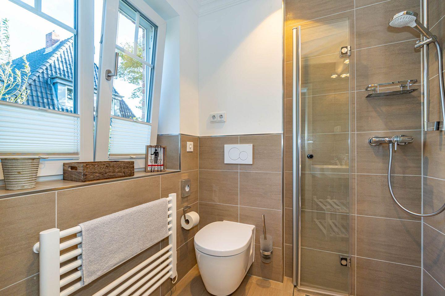 Die im Strandhausstil eingerichtete 3- Zimmer- Ferienwohnung (ca. 70 qm) befindet sich in einem Ferienhaus mit sechs Einheiten, im Süden Westerlands. Der gemütliche Wohnbereich im Erdgeschoss mit großem Flat-TV, einladendem Sofa mit 180 cm Sitzfläche, lädt zum Verweilen ein. Angrenzend befindet sich der gut ausgestattete, hochwertige, offene Küchenbereich (Nespresso-, als auch Filterkaffeemaschine, Kühlschrank mit Gefrierfach, Geschirrspüler, Induktionskochfeld mit Querströmungsabzug von Bora und Backofen) mit Essplatz. Auf dieser Ebene befindet sich zudem das Gäste-WC mit bodentiefer Dusche & Handtuchheizung. Vom Wohnbereich haben Sie den Zugang zur Terrasse mit Gartenanteil. In der Zeit von April bis Oktober bieten Ihnen die Gartenmöbel und ein Strandkorb die Möglichkeit zum Sonnenbaden. Im Souterrain befinden sich zwei Schlafzimmer, jeweils mit Einbaubetten. Beide Zimmer verfügen über ein TV-Gerät & Leselampen. Eines der beiden Zimmer bietet durch seine hochwertigen, weißen Tischlereinbauschränke zudem viel Stauraum. Noch mehr Schrankfläche finden Sie im Flur. Das Badezimmer im Souterrain weist eine bodentiefe Dusche, eine Handtuchheizung als auch eine Badewanne auf, in der man es sich gemütlich machen kann. Ein Waschtrockner steht im Abstellraum zur Verfügung. Die WLAN-Nutzung ist in der Ferienwohnung Aurora selbstverständlich kostenlos. Bitte beachten Sie, dass die Ferienwohnung eine Nichtraucherwohnung ist und Haustiere hier nicht erlaubt sind. Ein Pkw-Stellplatz und ein Fahrradabstellplatz sind am Haus verfügbar.