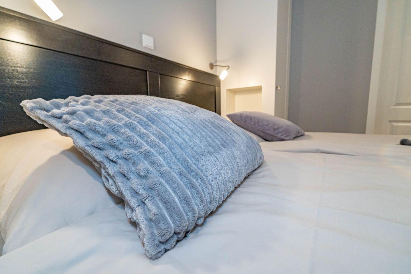Die Betten sind immer bezogen und zwei Duschtücher, zwei Handtücher, eine Duschmatte, ein Küchentuch pro Person vorhanden.