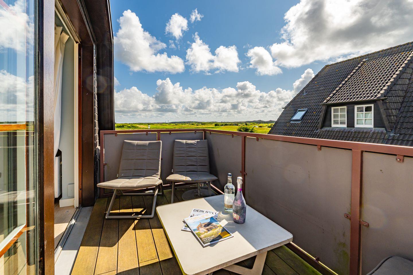 Moderne 4-Zimmer-Ferienwohnung in Westerland mit Balkon und Blick auf die Deichwiesen.