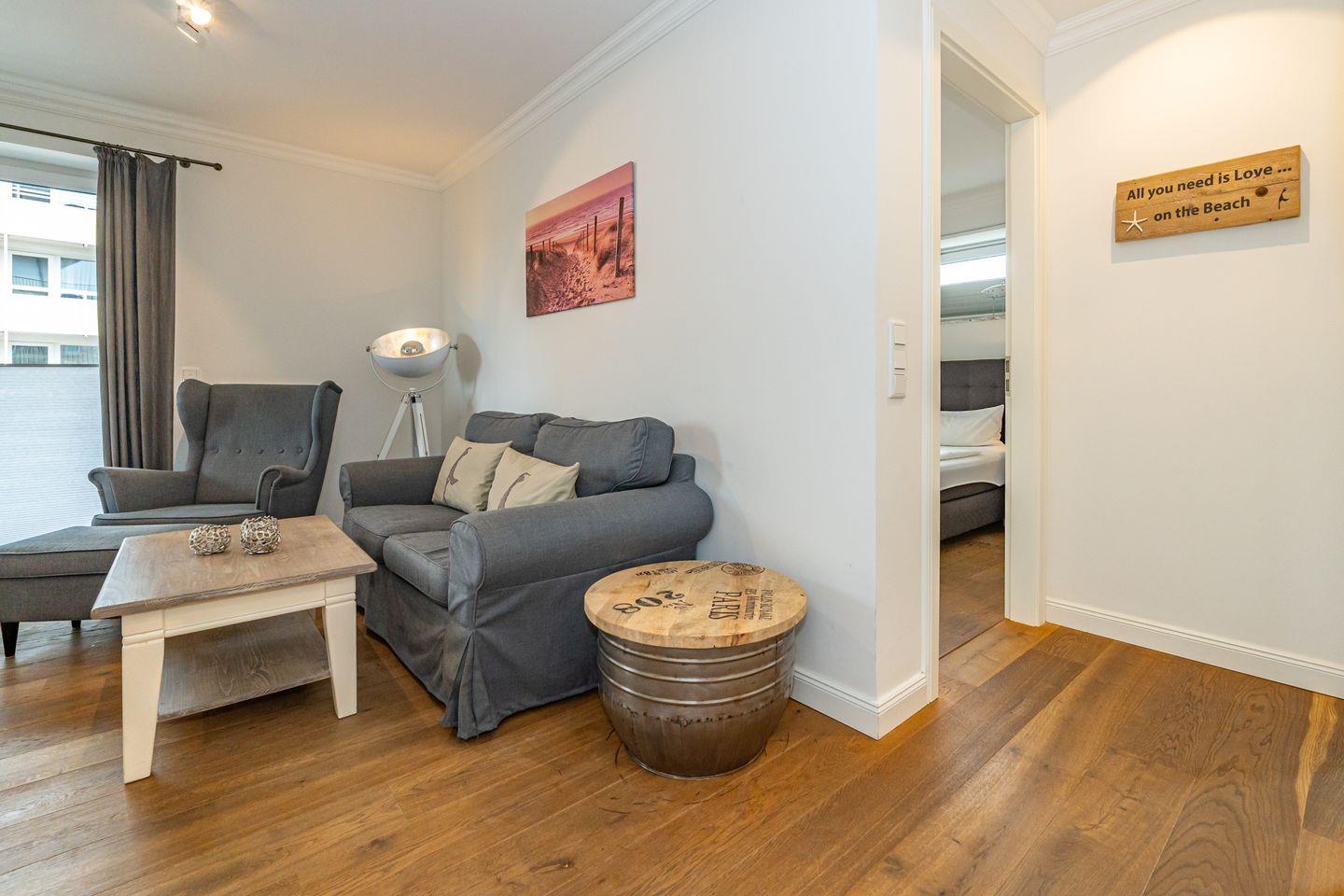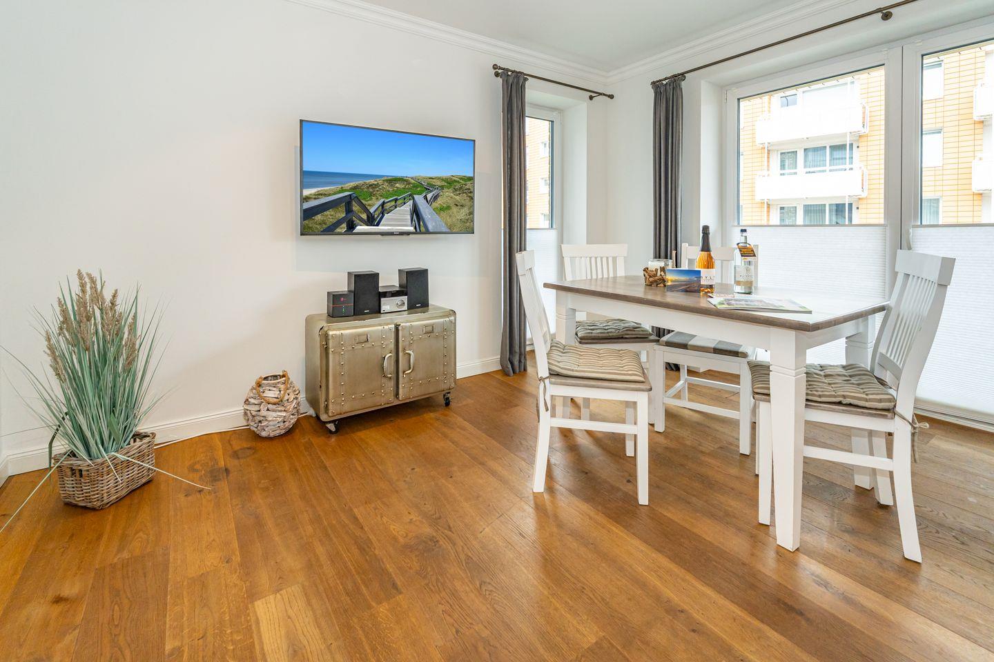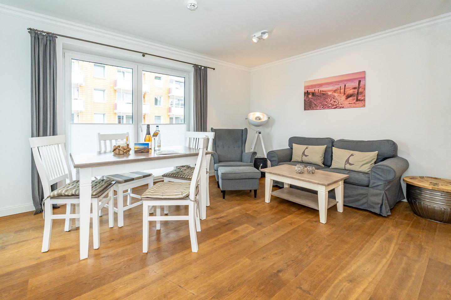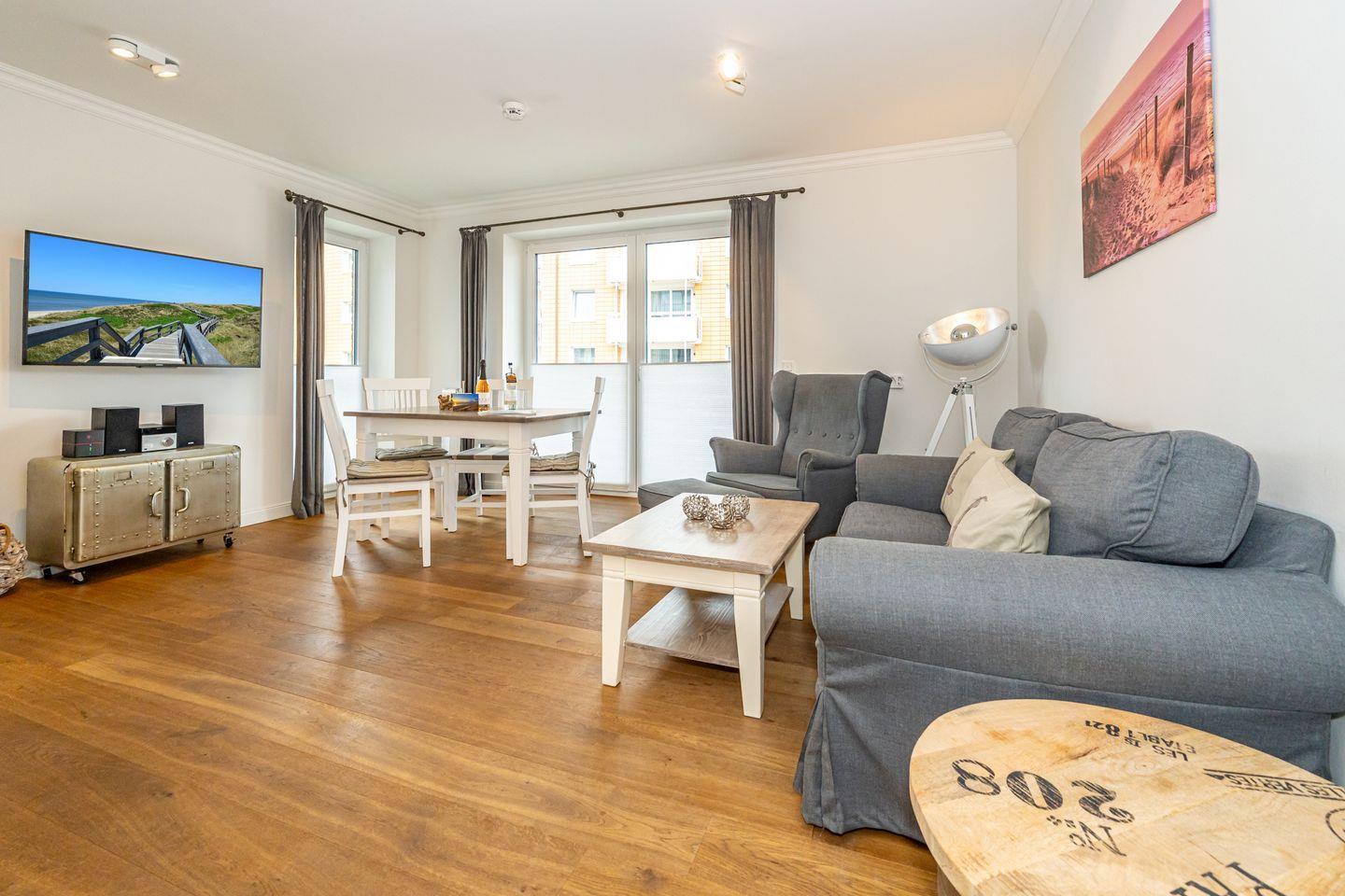 Moderne Ferienwohnung mit Balkon und Tiefgaragenstellplatz, nur 200 m vom Strand in Westerland entfernt.