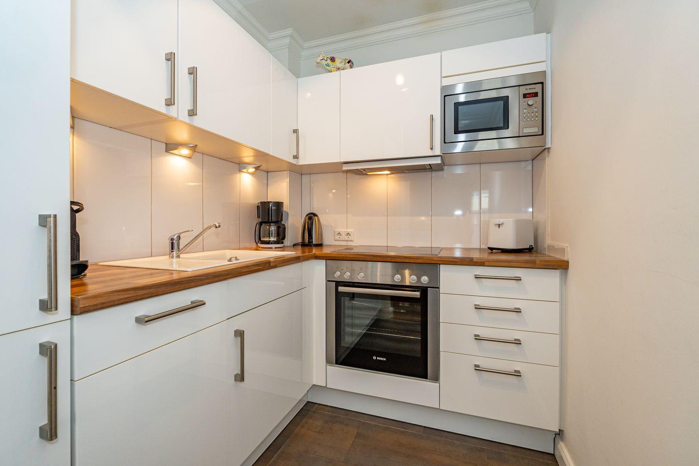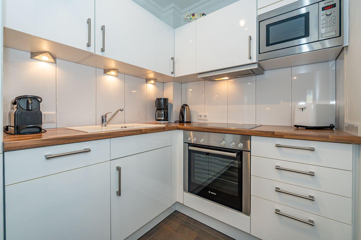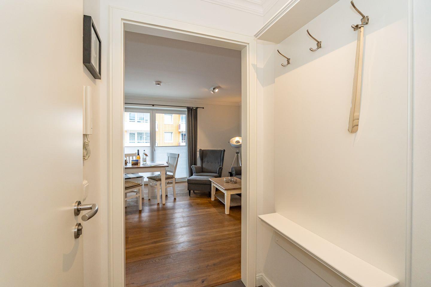 Die Ferienwohnung befindet sich im 1 OG und ist per Treppe oder Fahrstuhl zu erreichen. Durch die Wohnungstür betreten Sie einen kleinen Flur mit Garderobe. Der Wohn- und Essbereich ist ausgestattet mit einem, gemütlichen Sofa, TV und Essplatz. Von hier aus haben Sie Zutritt zum möblierten Balkon. Angrenzend an den Wohn- Und Essbereich befindet sich die offene Küche (Backofen, Herd, Gefrierfach, Toaster, Geschirrspüler, Nespressomaschine, Kaffeefiltermaschine) . Hier können Sie köstliche Mahlzeiten zubereiten. Das Schlafzimmer verfügt über ein Boxspringbett, Kleiderschrank und TV. Ein großes, helles Badezimmer mit Dusche, steht Ihnen selbstverständlich auch zur Verfügung.