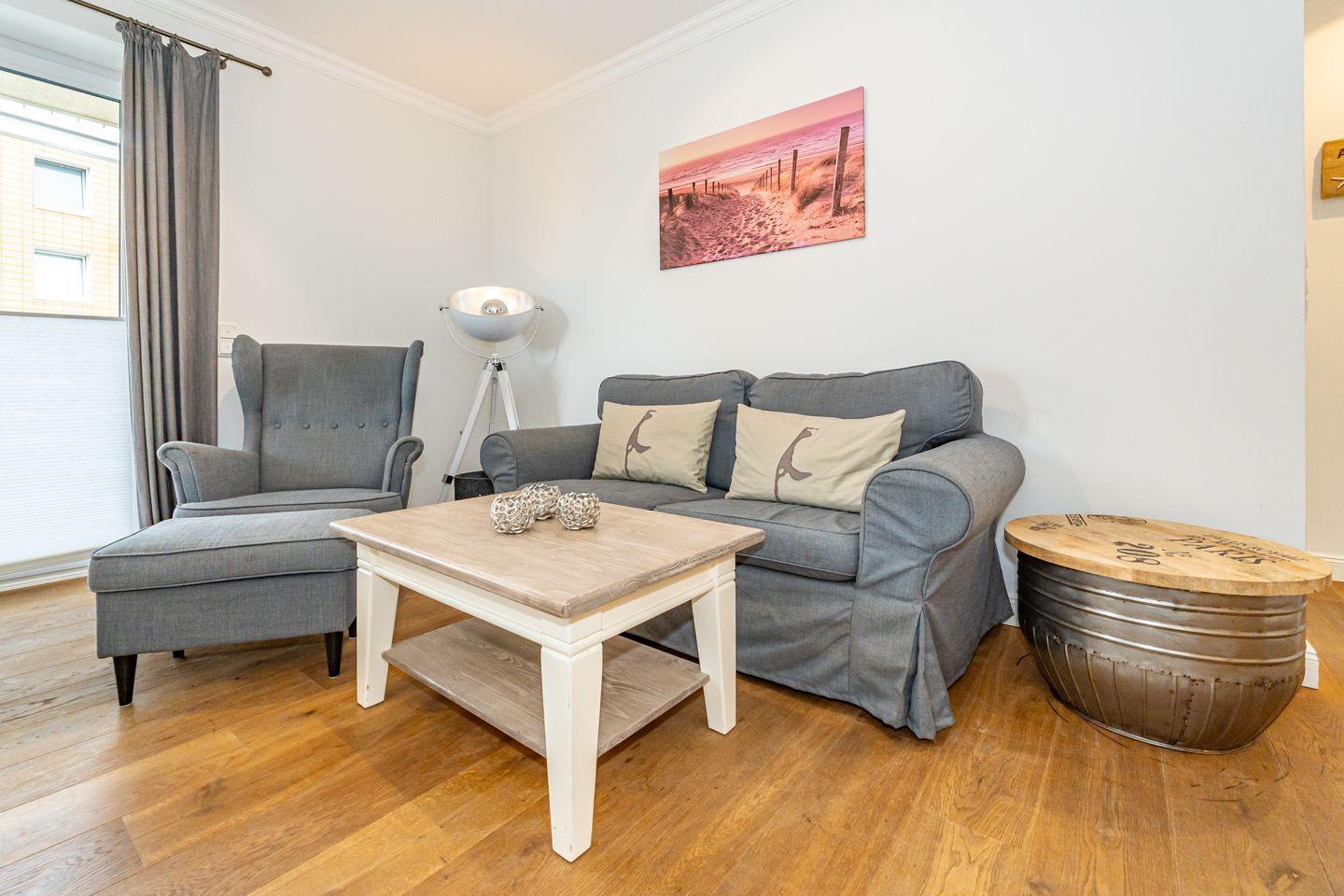 Nur 200 Meter vom Sandstrand entfernt, genießen Sie hier entspannte Tage am Meer. Die Ferienwohnung verfügt über einen Balkon mit Gartenmöbeln, eine voll ausgestattete offene Küche und ein gemütliches Wohnzimmer. Ebenso steht Ihnen ein Tiefgaragenstellplatz zur Verfügung.