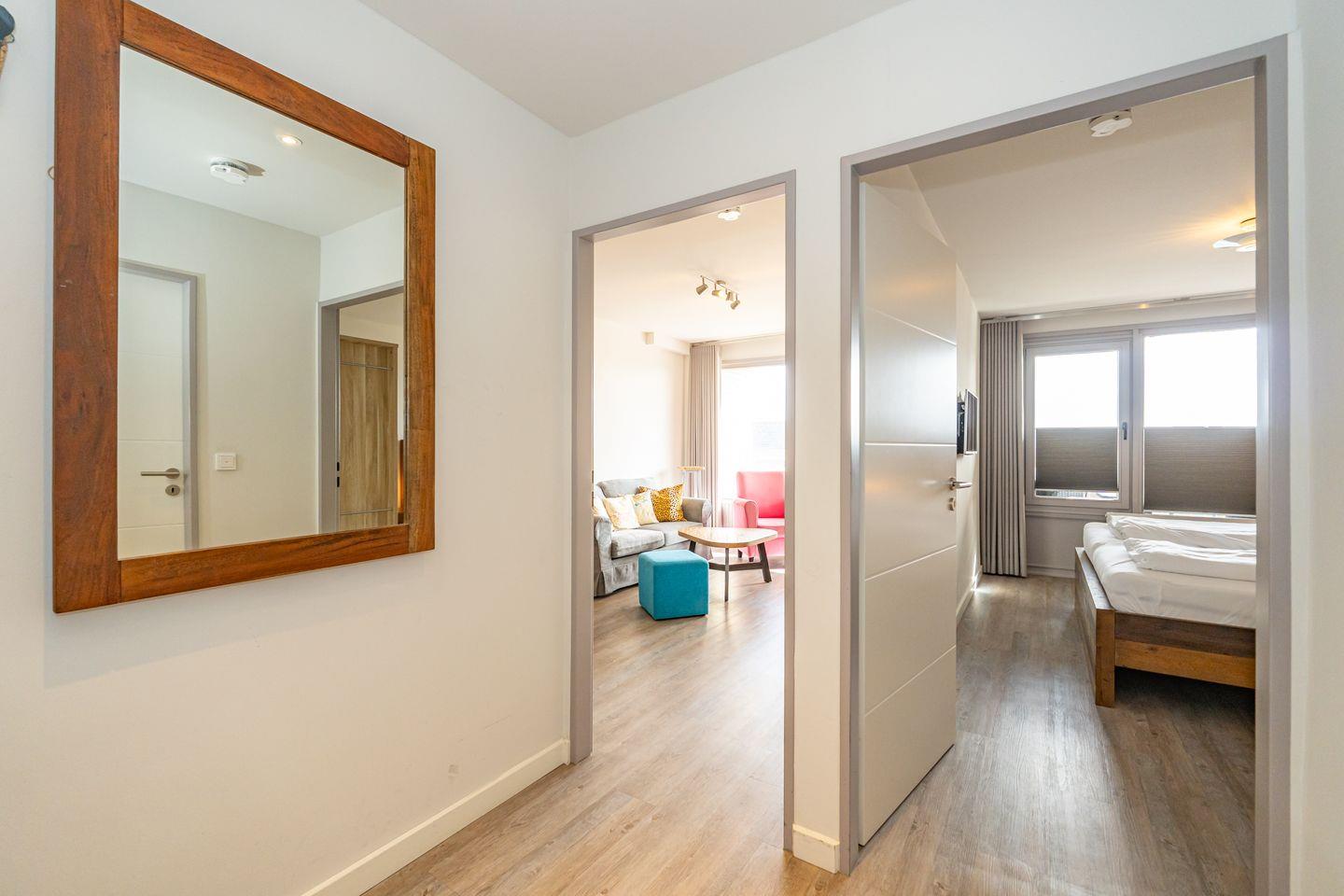 Der Wohnbereich verfügt über ein gemütliches Sofa und einen bequemen Fernsehsessel, hier oder auf dem Balkon können Sie nach einem schönen Strandtag, bei einem Glas Wein den Abend ausklingen lassen. Im Schlafzimmer befindet sich ein Doppelbett (180 x 200 cm) und ein Kleiderschrank für Ihre Garderobe. Das Duschbad ist ausgestattet mit einer Dusche, Waschbecken, Handtuchtrockner, WC und Haartrockner. Rauchen ist in dieser Ferienwohnung nicht gestattet. Kleine wohlerzogene Hunde sind nach vorheriger Anmeldung und gegen Gebühr erlaubt. Zur Ferienwohnung gehört ein Tiefgaragenstellplatz. Bitte beachten Sie, das dieser nur für Autos bis zu einer Länge von 4,70 Meter geeignet ist.
