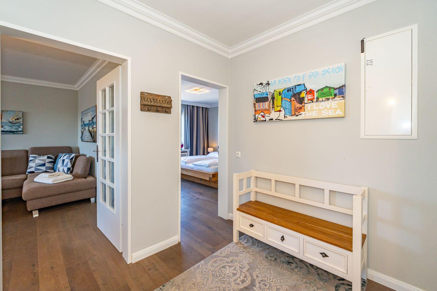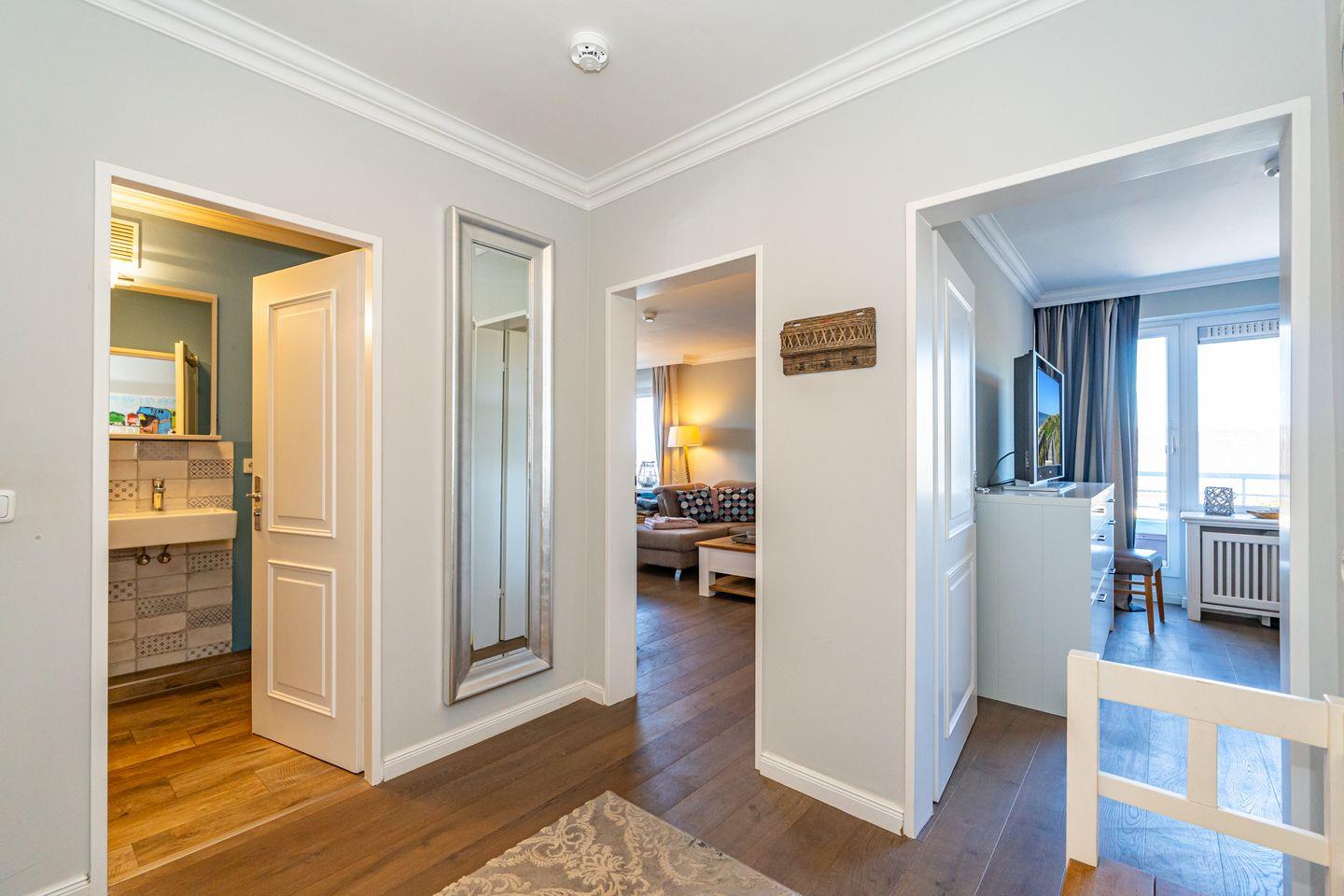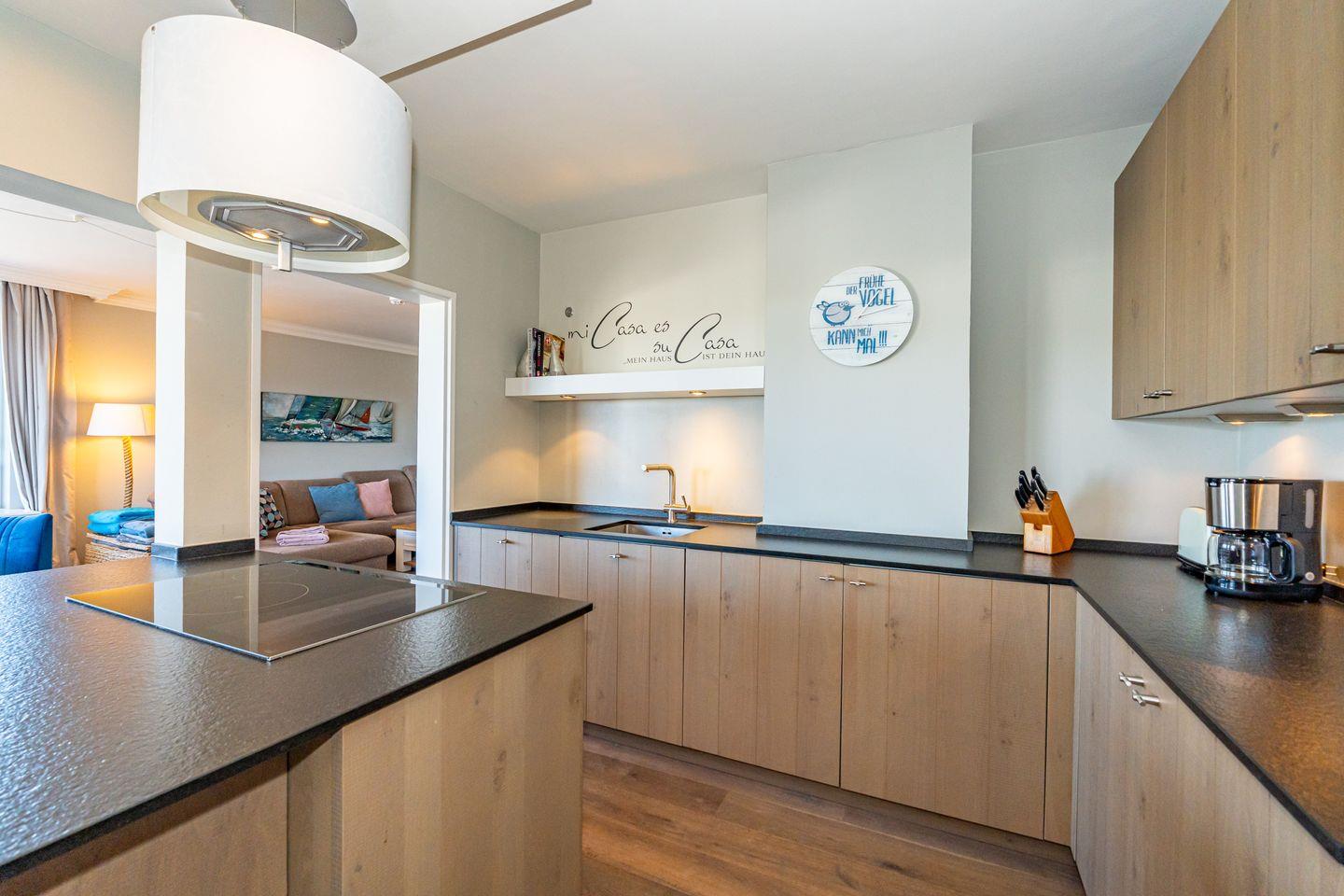 Genießen Sie die große Dachterrasse mit Gartenmöbeln und Ihrem eigenen Strandkorb. Die Sauna sorgt für entspannte Momente nach einem aktiven Tag. Die Ferienwohnung verfügt über eine vollausgestattete, offene Küche und einen PKW Stellplatz.