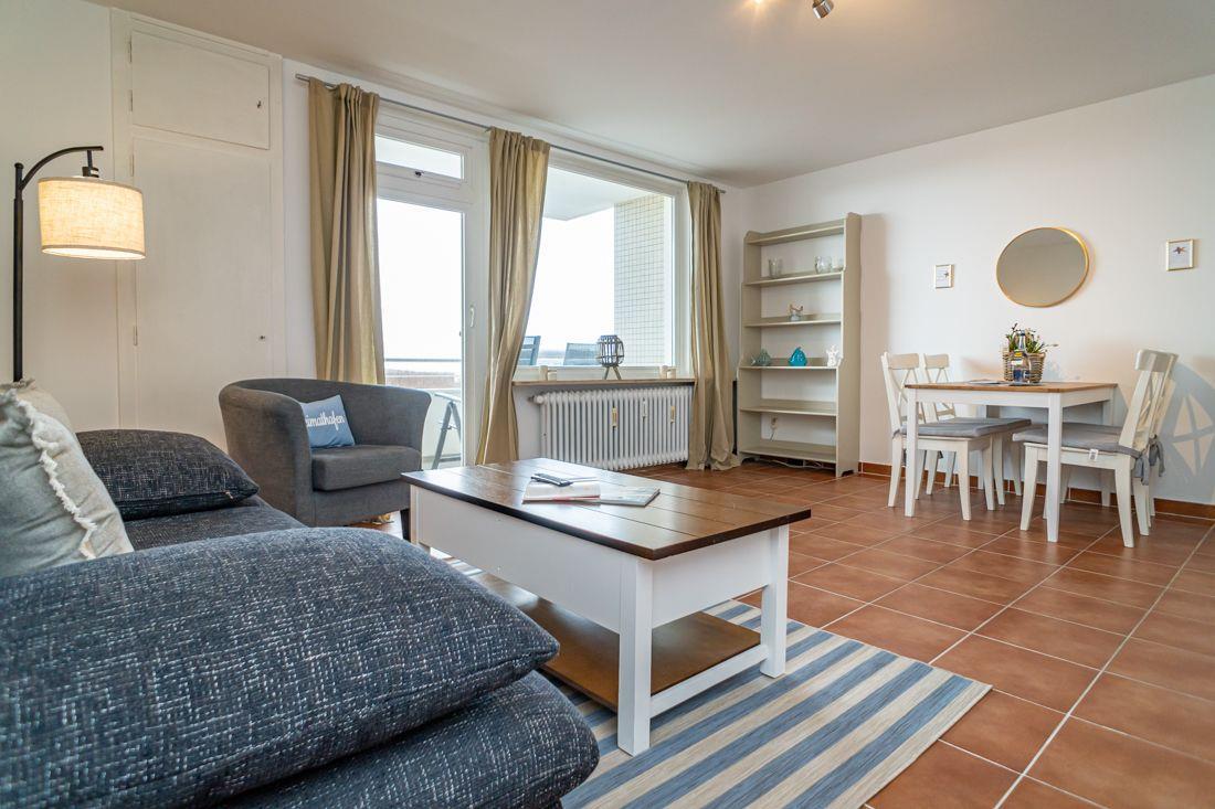 Maritime Ferienwohnung in Westerland mit Balkon, Meerblick und moderner Ausstattung für entspannte Urlaubstage.