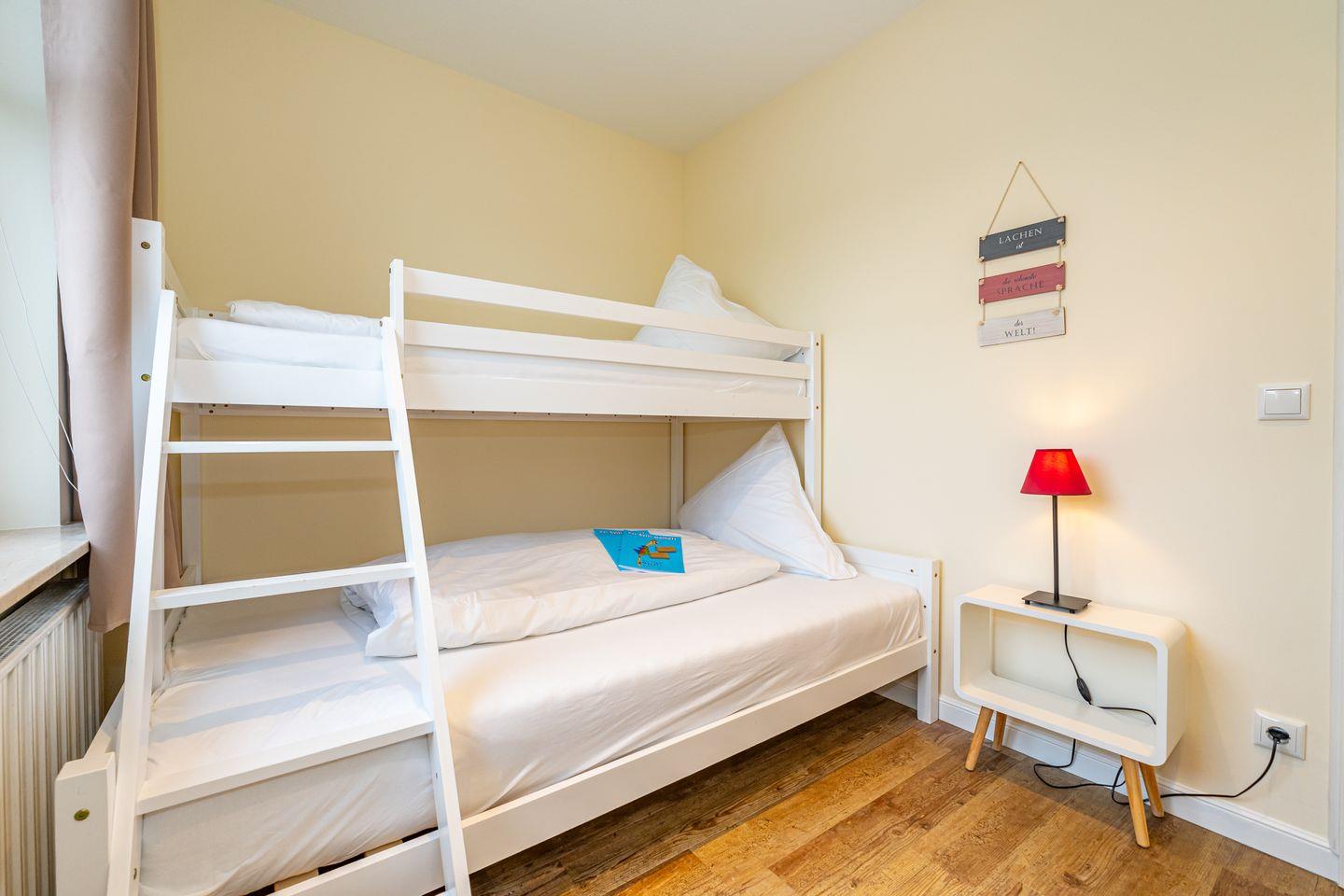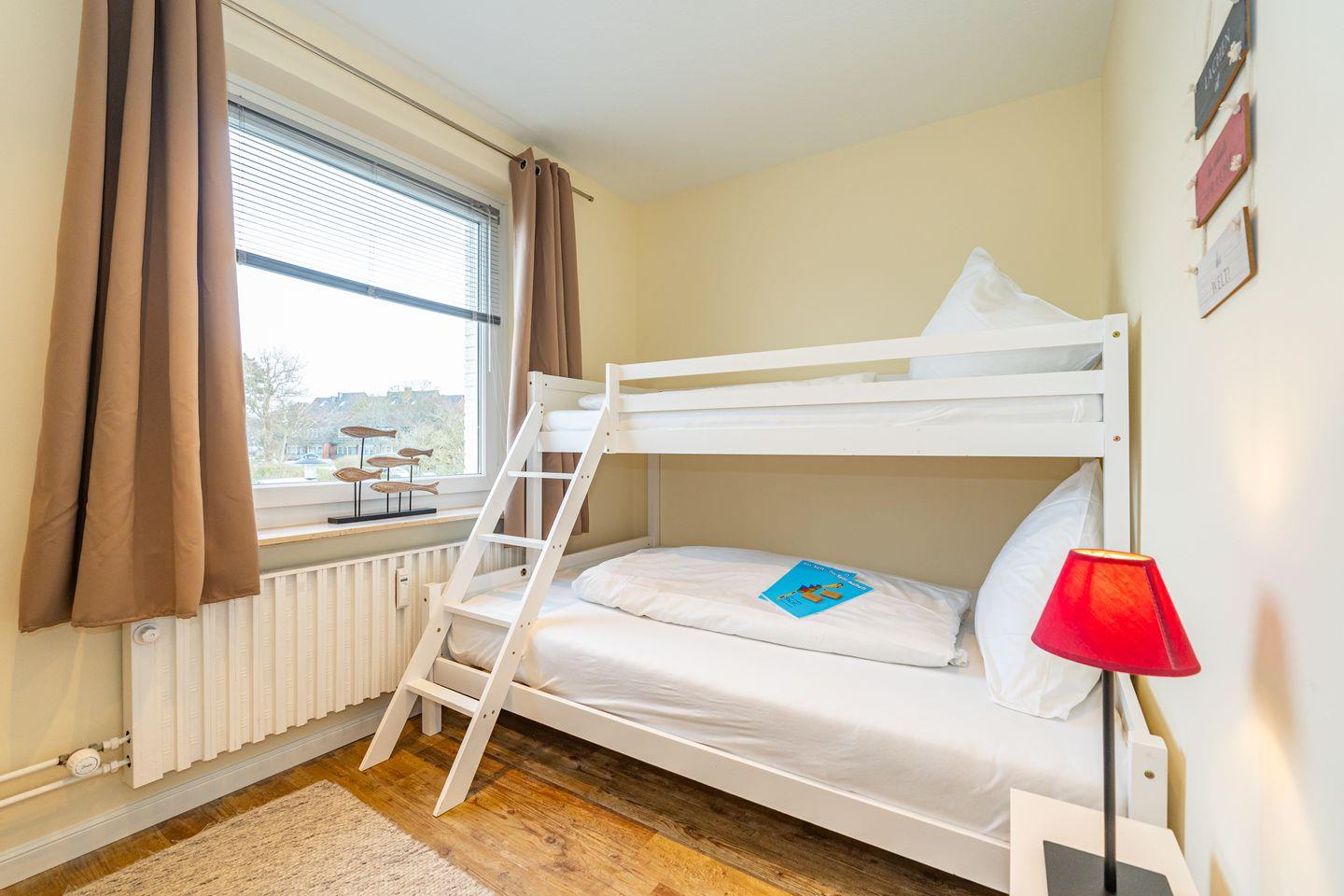 Über eine offene Wendeltreppe gelangen Sie ins 1. OG wo sich die Ferienwohnung befindet. Die Ferienwohnung verfügt über einen großen, hellen Wohn- und Essbereich mit gemütlichen Sitzmöglichkeiten, Flatscreen-TV und einem Esstisch. Die Ferienwohnung hat 2 gemütliche Schlafzimmer, eines mit Doppelbett und eines mit Etagenbett. Die separate Küche verfügt über einen Geschirrspüler, Backofen/Ceranfeld, Kaffeevollautomat, Mikrowelle und Filterkaffeemaschine. Zaubern Sie hier ein leckeres Abendessen, welches Sie auf Ihrem Balkon genießen können. Das Badezimmer verfügt über ein Dusche und WC. Die Ferienwohnung "Sölring Strön" ist eine Nichtraucherferienwohnung. Sie befindet sich in der 1. Etage und verfügt über einen Parkplatz, direkt vor dem Haus.