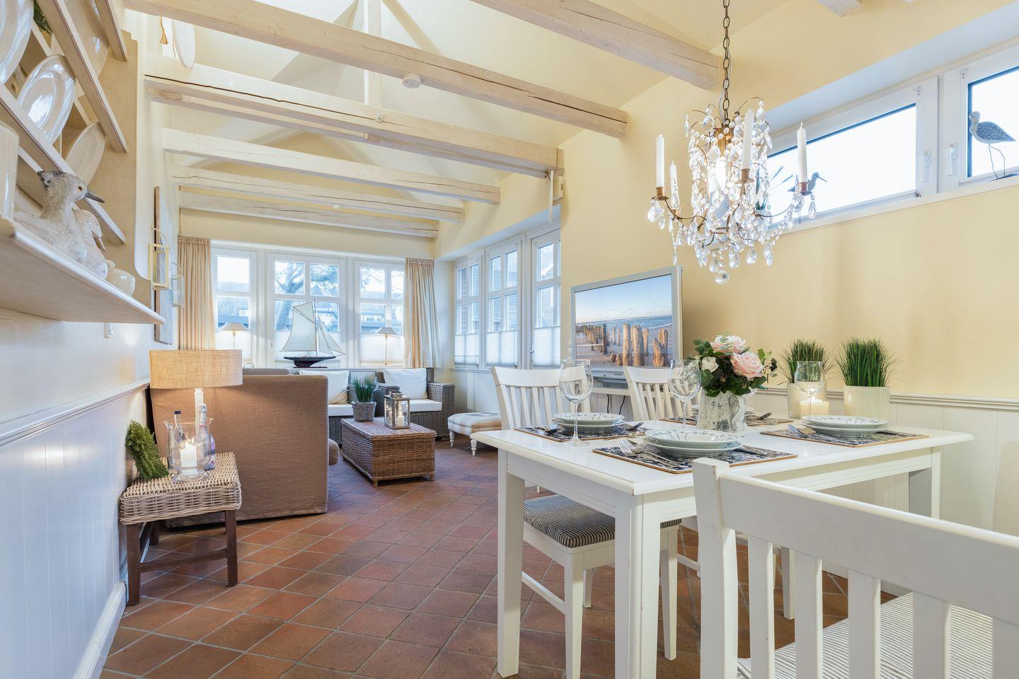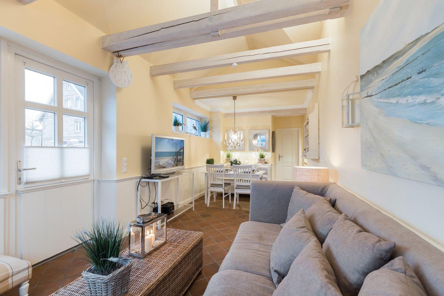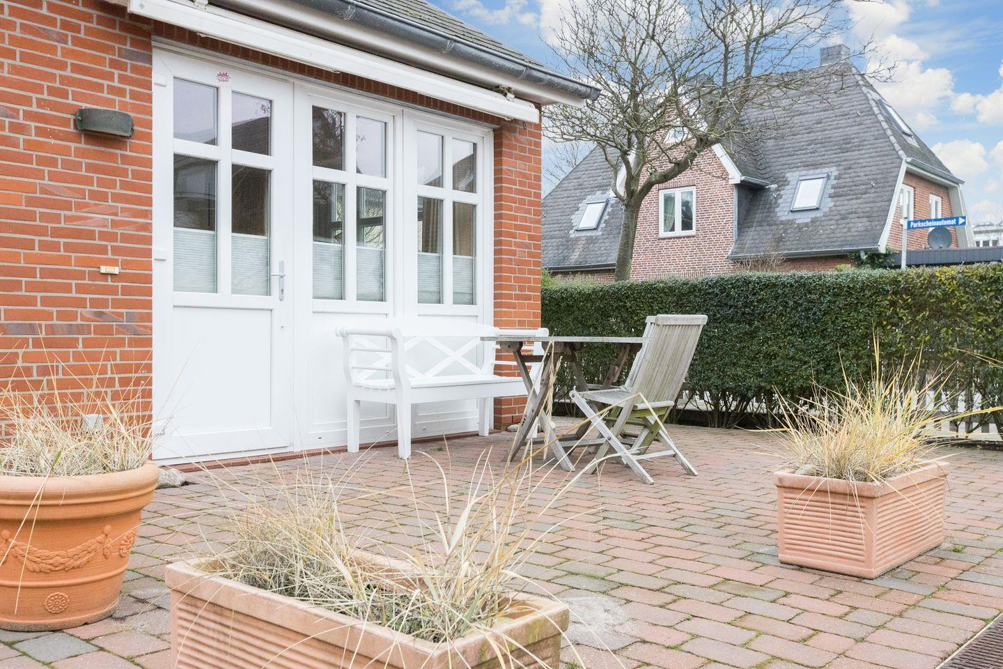 Diese 3- Zimmer- Ferienwohnung (77m²) im Erdgeschoss liegt stadt- und strandnah. Es erwarten Sie ein maritimes Wohn- und Esszimmer mit zwei Sofas, Flatscreen und gemütlichen Essplatz. Über drei Stufen erreichen Sie die offene Küche mit Geschirrspüler, Cerankochfeld, Kühlschrank mit Eisfach und Backofen. Zwei Schlafzimmer mit Doppelbetten, (180 x 200 cm)und viel Stauraum in hochwertigen Tischlerbauten stehen Ihnen zur Verfügung. Zwei Bäder mit Dusche und WC sind ebenfalls Bestandteil dieser Ferienwohnung. Eine Terrasse mit Gartenmöbeln und Sylter Strandkorb (saisonal) befindet sich direkt vor dem Haus. Der kostenfreie Stellplatz steht Ihnen direkt vor dem Haus zur Verfügung. Das absolute Highlight dieser Ferienwohnung ist die freie Nutzung des gemeinschaftlichen Wellnessbereiches mit Pool, Sauna und Dampfsauna im Haus Bötticher Straße 7 (Kellerabgang), nur wenige Meter von Ihrer Eingangstür entfernt. Fahrräder können Sie Wetter- und Sichtgeschützt, in einem offenen Unterstand, anschließen.