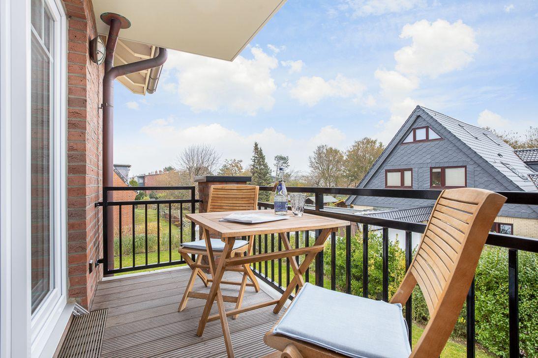 Auf dem Balkon (Ostseite), vor Ihrem Schlafzimmer, empfängt Sie die Morgensonne.