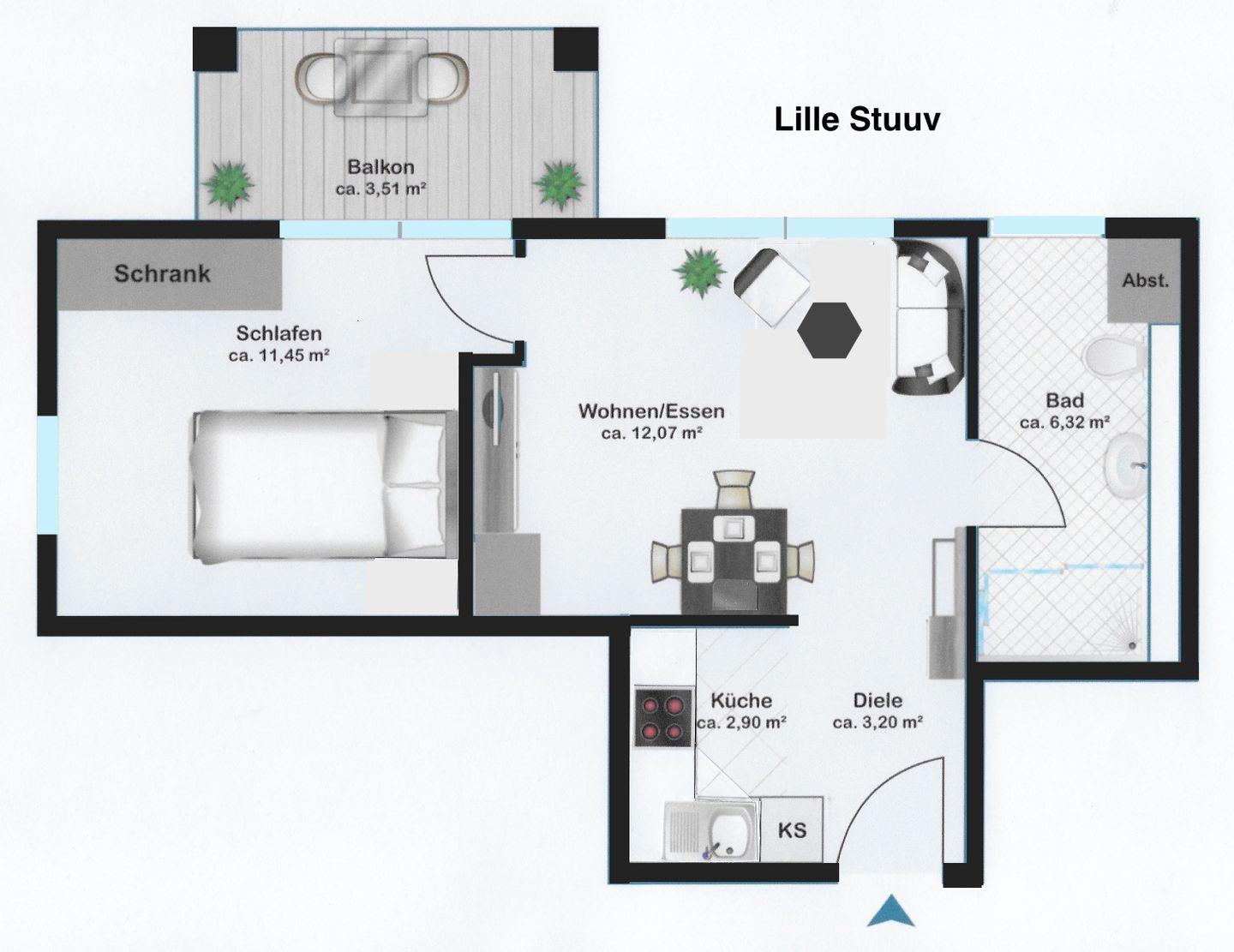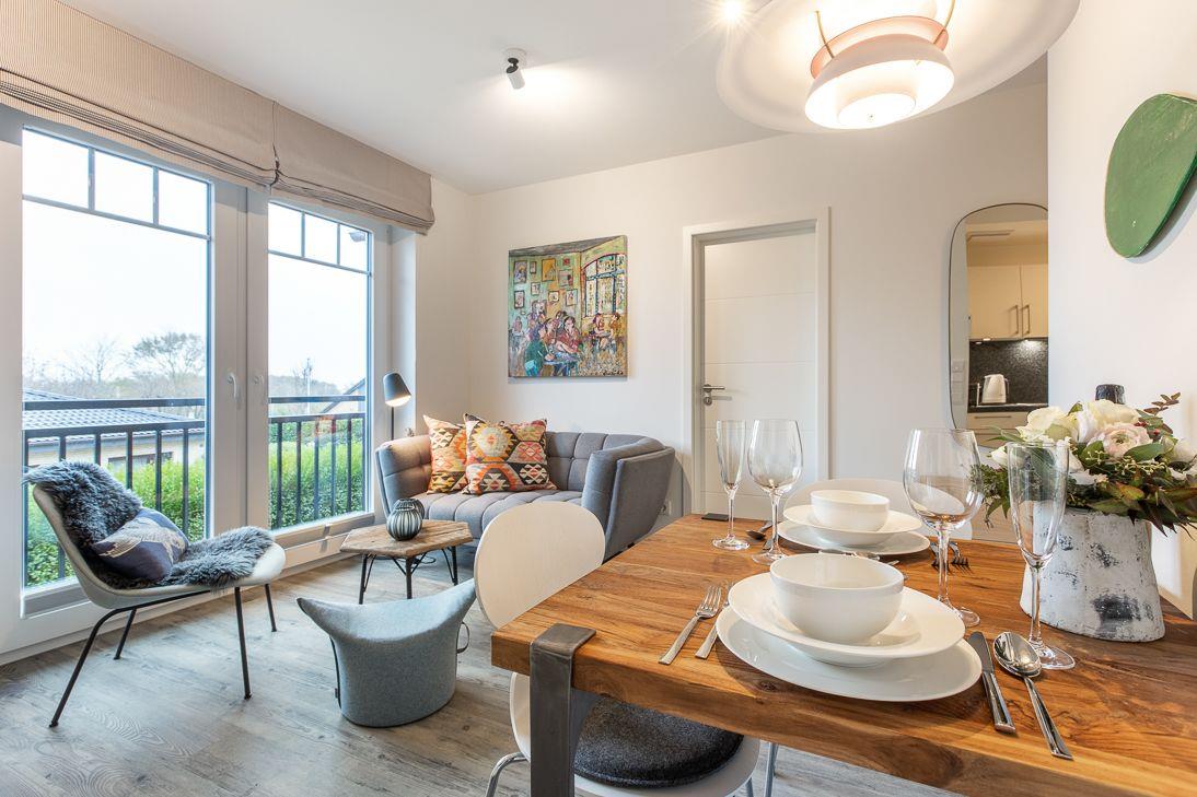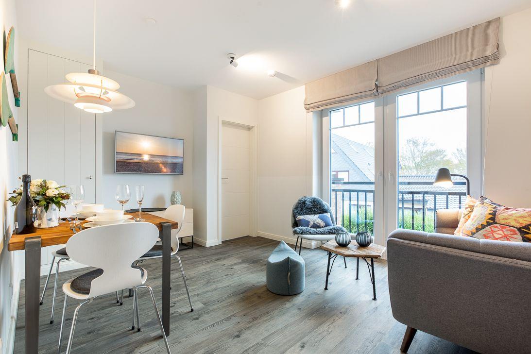 Moderne Ferienwohnung Lille Stuuv in Westerland mit Balkon, WLAN und eigenem Parkplatz, ideal für 2 Personen.